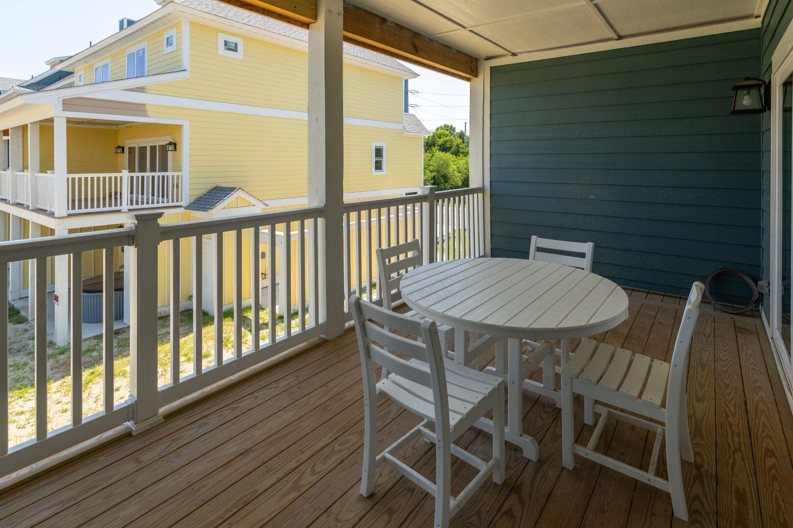 You will find ample space in this well-decorated townhouse. Access the garage from the first level for parking or for simply storing your pool or beach gear. On this level, you will also find a comfortable den perfect for reading a good book or a challenging video game! Venture out to the back patio and enjoy a relaxing soak in the hot tub. Heading upstairs you will find the other socializing and hanging out areas - the living area, kitchen, and dining area. There is a deck to go out and enjoy your morning coffee and listen to the peacefulness of the Outer Banks. Also on this level is a half bathroom for convenience. Upstairs on the third level is where you can find some of the sleeping arrangements - choose between a King En Suite and a Queen En Suite. But who will get to stay on the fourth level with the two Queen Beds? Those folks will have a private paradise all to themselves.