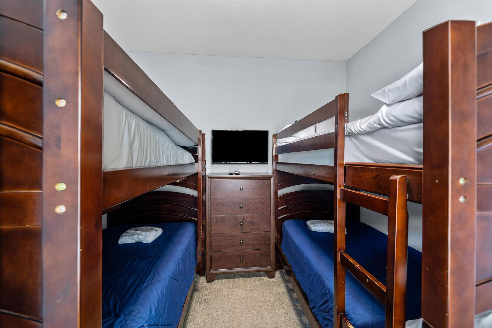 Moving down to the second level recreation room with a fun pool table and shuffleboard table. Hours of friendly competition will surely happen here. Another deck with two more Adirondack chairs also graces this level. Two King En Suite on this level (one convertible to two twins) offer wonderful privacy for two lucky couples.