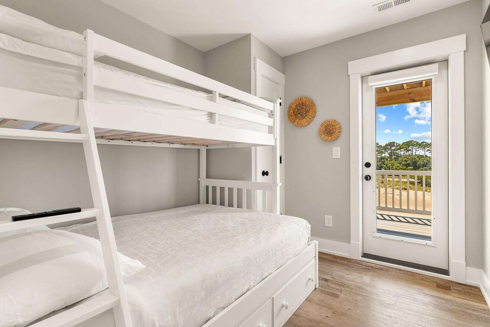 The third level of this home offers an open-style great room with a flat-screen tv and comfy couch. Adjacent to this room, you will find the well-equipped gourmet kitchen that any chef would be proud to cook in. There is plenty of dining room table space for everyone, along with additional bar seating space. Rounding out this level is a half bathroom just off the great room and a King En Suite.