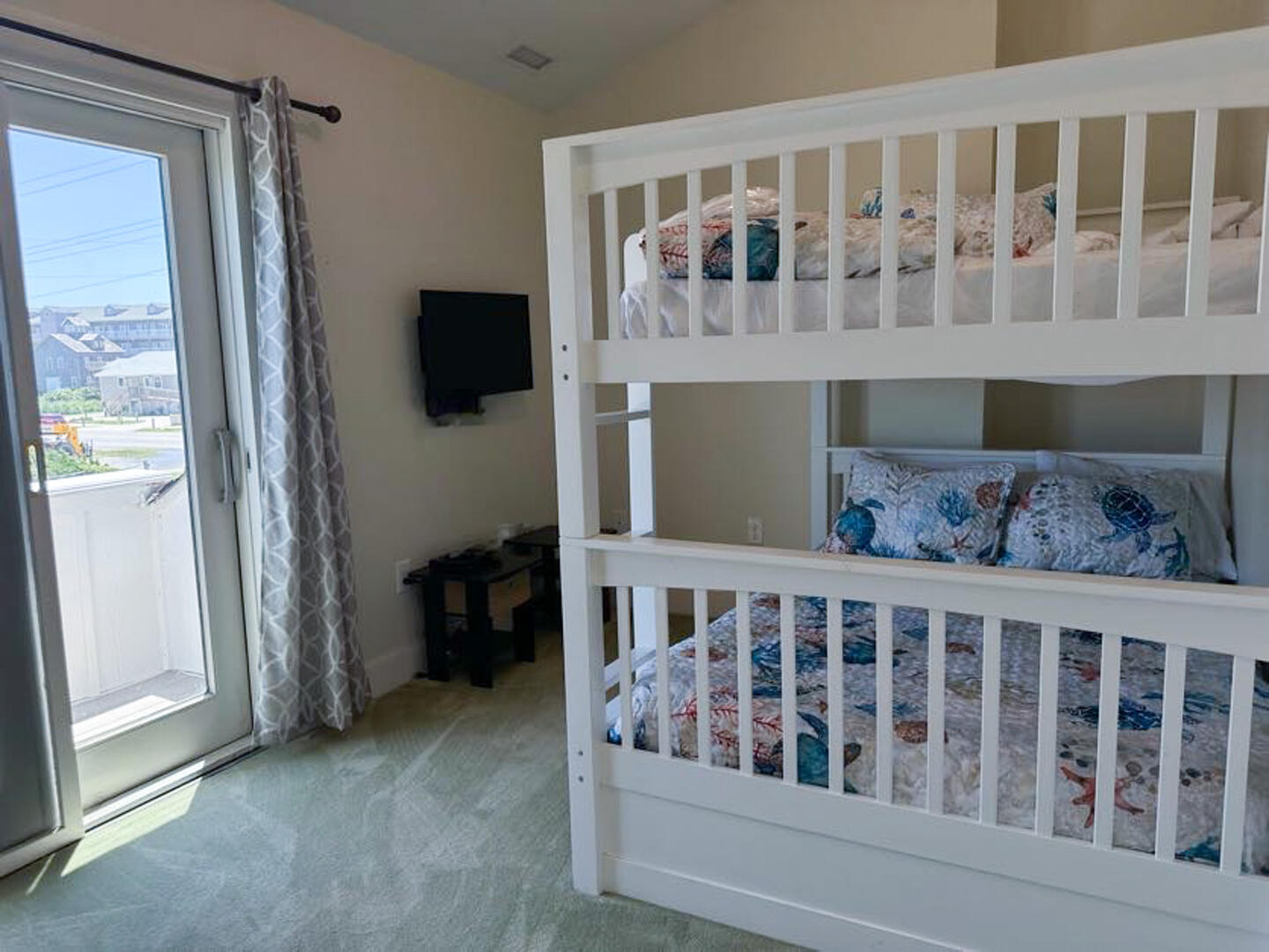 Located in the heart of Hatteras Island, Stowe Quarters offers a unique vacation experience. Residing above a small, upscale shopping plaza named Stowe on 12, Stowe Quarters is a three-bedroom condo that has access to shopping, easy beach access, and eateries all at very close proximity! Guests can choose from a King En Suite, and a King Bedroom which shares a full bathroom with a Pyramid Bunk bedroom. There is a living area, a kitchen, and a dining room table. In this open space condo, fun can be had with the pool table and shuffleboard.