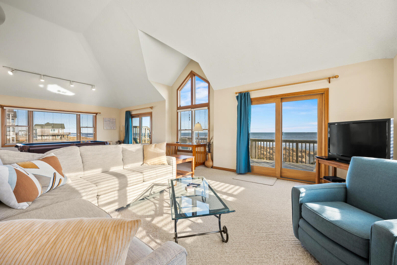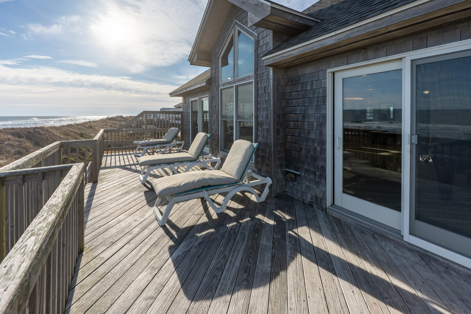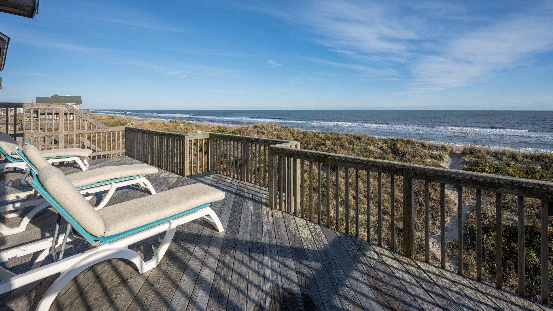 Best view… this beach runs east to west facing south, so sunrise and sunsets from the same deck overlooking the ocean this time of year.