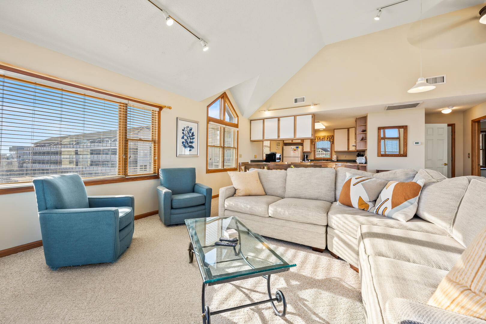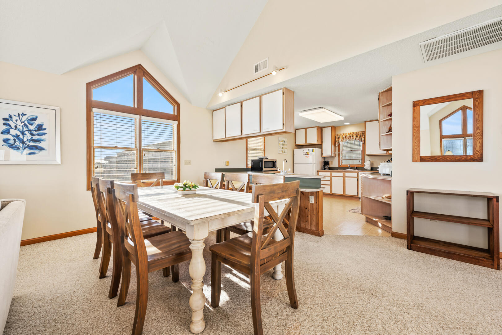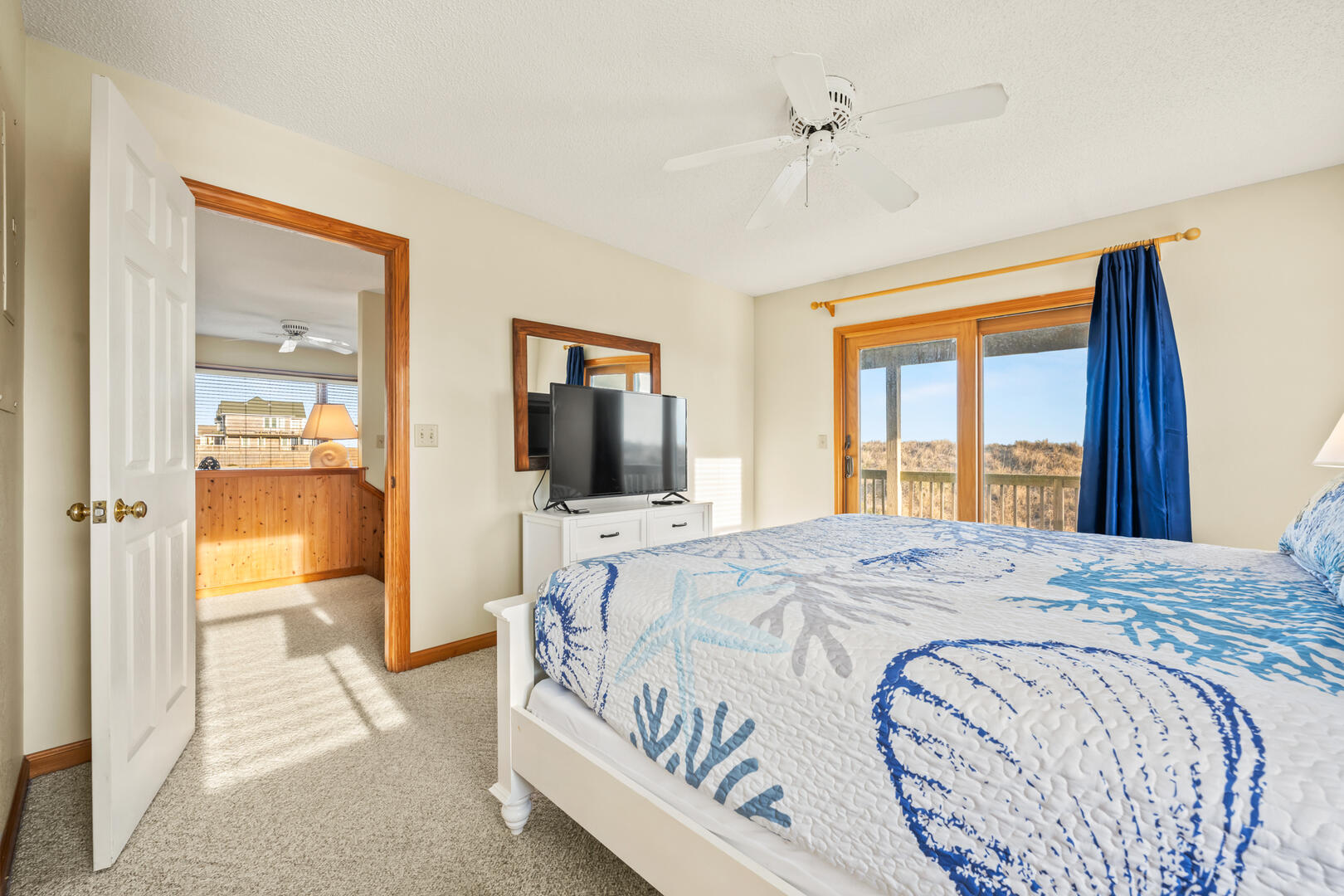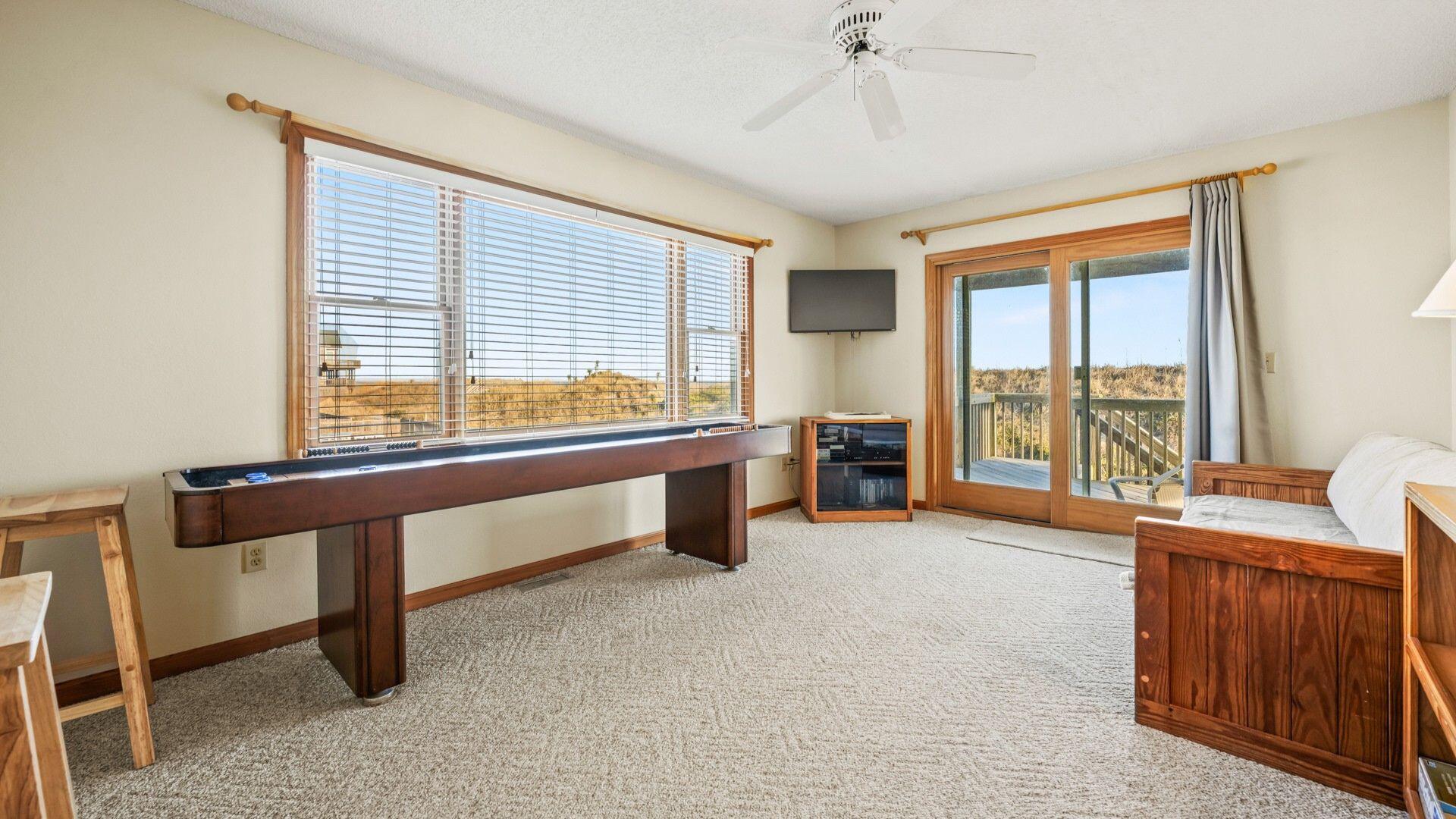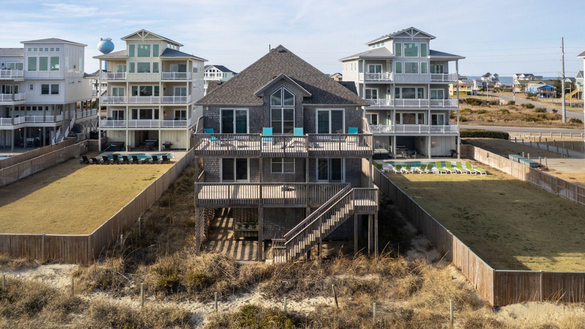 This property sits at the base of the beautiful Hatteras coastal dunes and has great views of the beach and dunes in both directions from the top floor. The great room on the top floor was perfect with a comfortable space and wonderful 180 degree views. The middle floor sitting room provides additional living space to read, relax or watch TV - a nice feature. The property is a little dated but was extremely clean, and the location and views more than make up for it. The outdoor shower was nice to have when coming in from the beach. The unit is close to the Hatteras Lighthouse and Okracoke Ferry (visiting Okracoke Island is a great little day trip!). There are several good restaurants close by, don’t miss having chowder at Hatteras Sol- delish! Adjacent properties site farther back and are not visible from either deck, and noise is nonexistent most of the time Care is needed when parking in the sand driveway because blowing sand can cause some deep spots Would definitely stay here again !- Rhonda , Posted: 09/21/2023