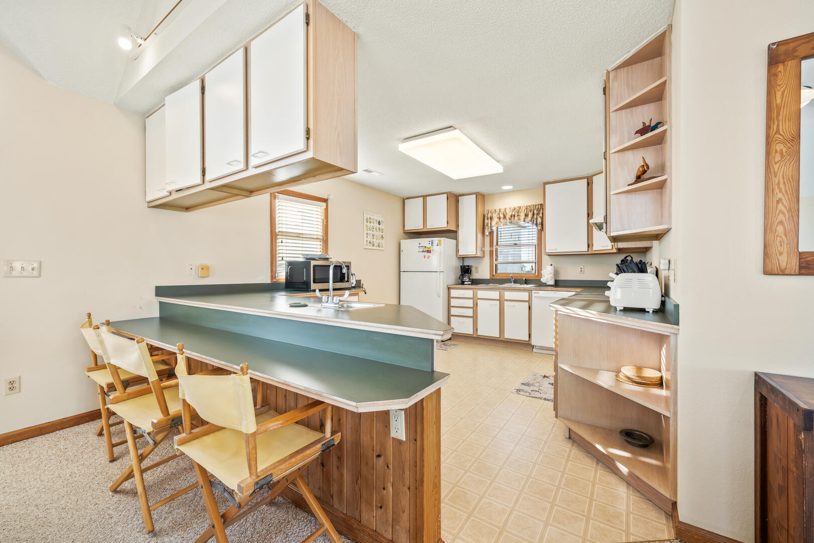 This place was very clean, comfy furniture and beds. Kitchen was well stocked! Only wish for me, because I am short, would have liked to have a high seated chair on the deck so I wasn't looking at the railing when I was sitting out there. Also, an umbrella for the upper deck would be very useful.- Patti , Posted: 06/07/2024