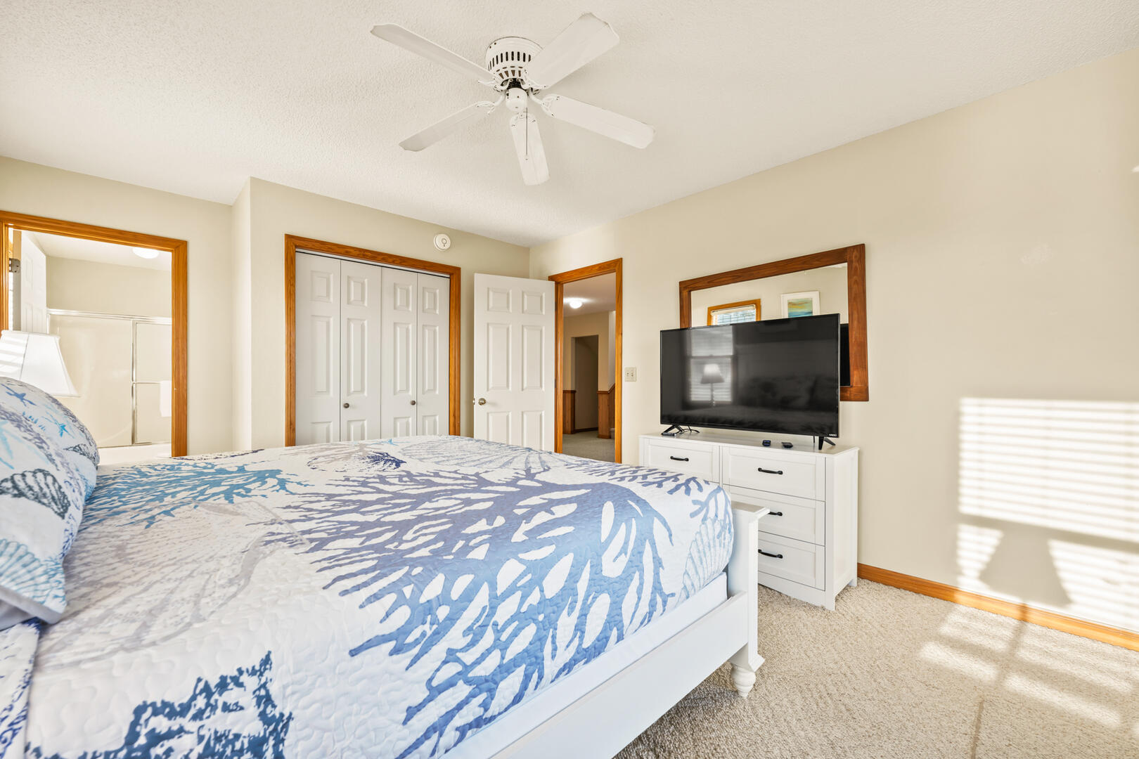 You'll love all the perks outside the home as well. A nearby community pool is available to you and your guests from Memorial Day to Labor Day and is less than a mile away from the house. You will be able to unwind and free yourself in the calm, breezy outdoor shower following those long days at the beach or pool. Ready to make a big meal for the group? A gas grill is available outside for your convenience.