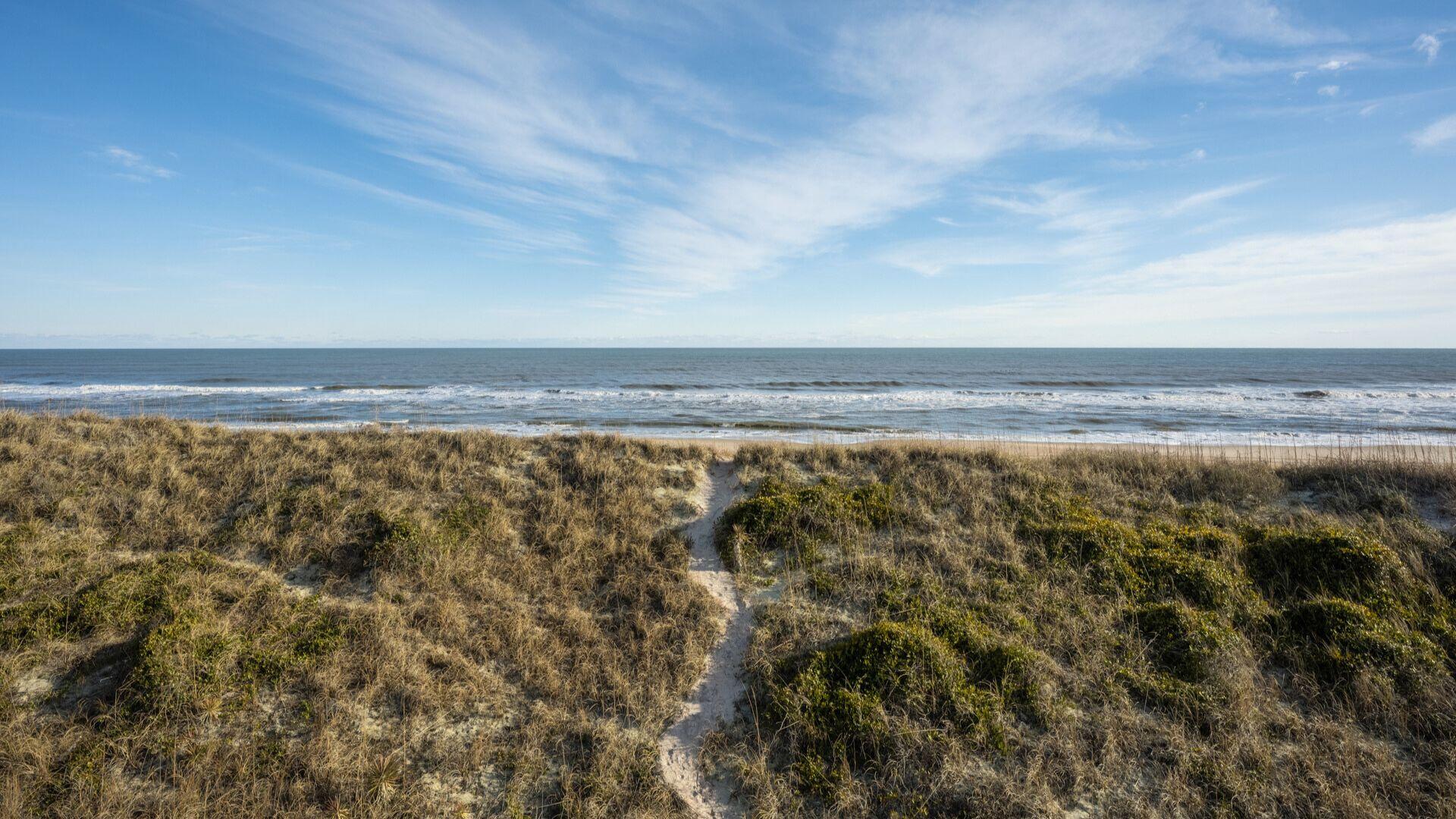 Q: Is there direct access to the beach from the house and are their life guards?A:There is a direct access from the home to the beach via a sand path over the dunes. There are roving life guards on Hatteras Island but no stationary life guard stations.