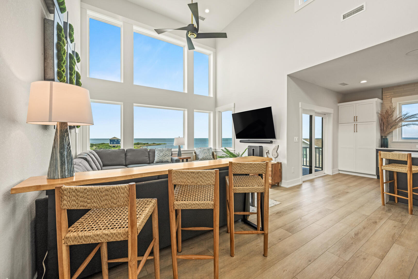 You will love this brand-new, pet-friendly construction in a unique location in Hatteras Village which gives you both an oceanfront and a soundfront vacation rental. Every room of this home has a breathtaking view of water. With this fabulous location, you will have the tough decision of whether to take a short walk to the ocean or go to the backyard and launch a paddleboard or kayak into the sound. The choices keep getting tougher with the additional option of your own private pool.