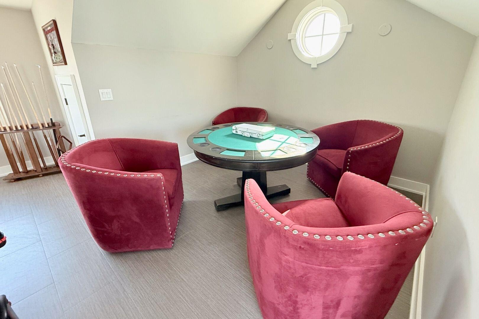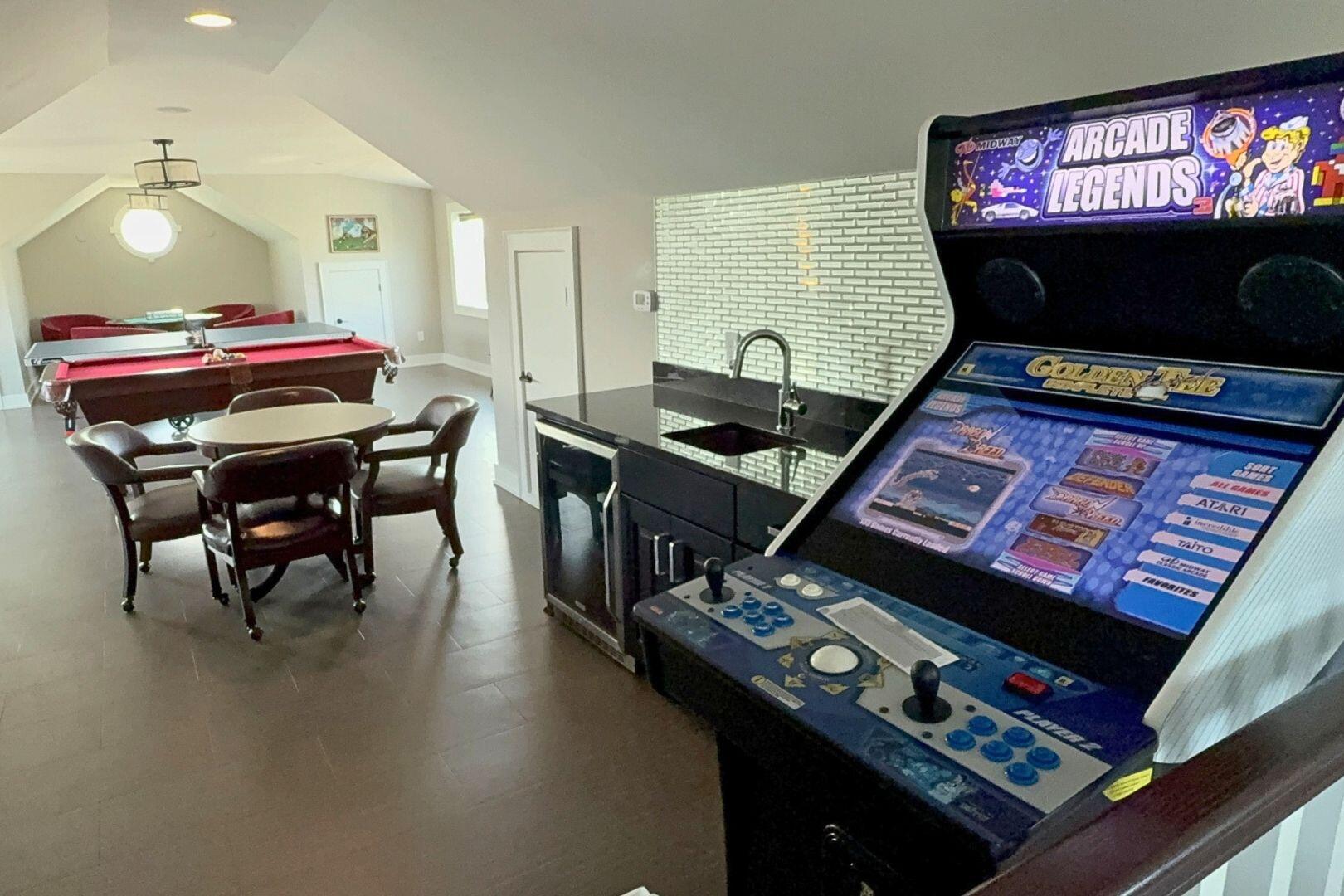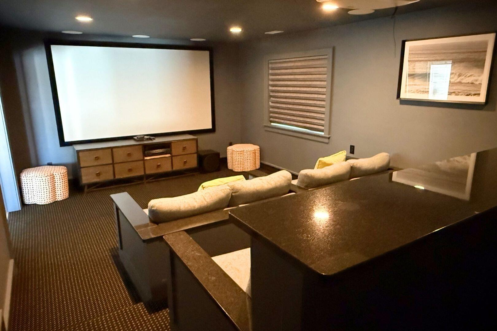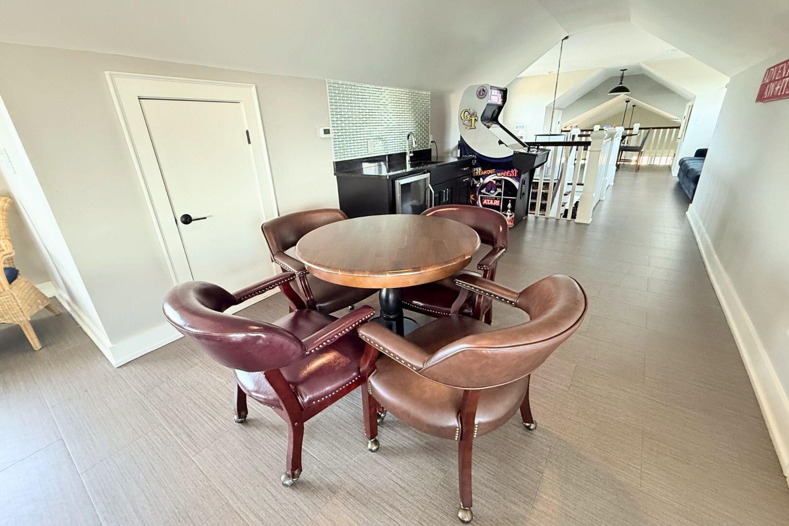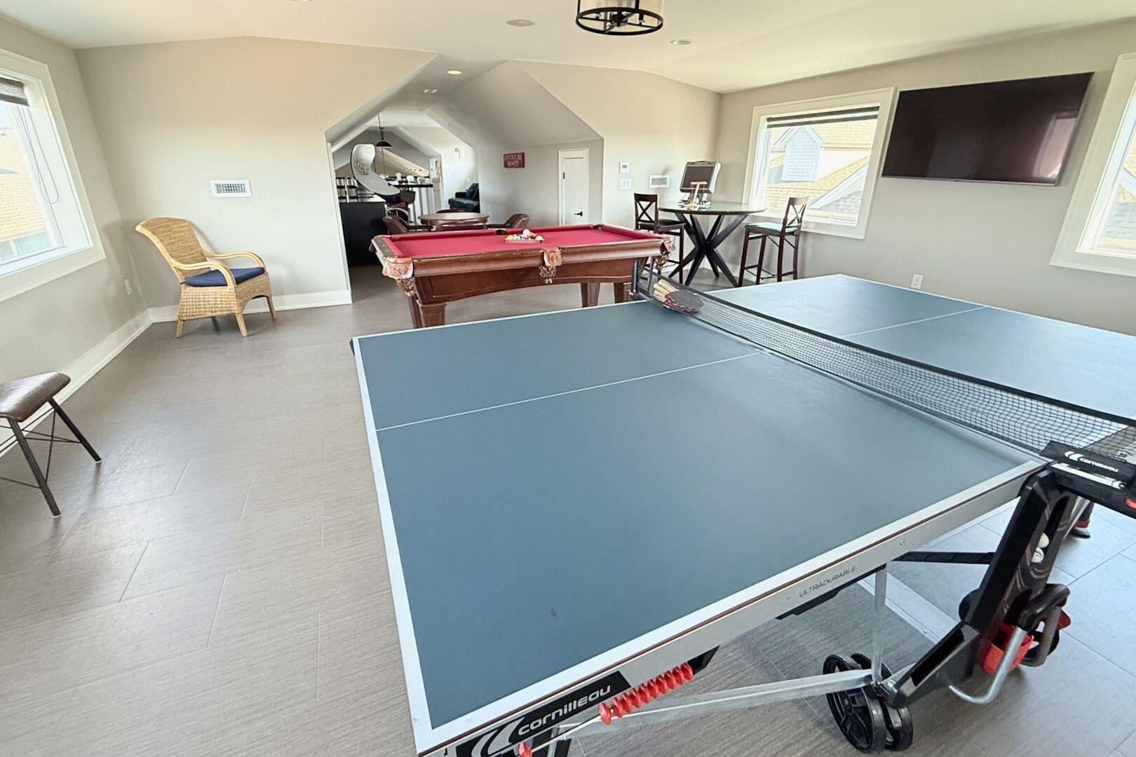 The artfully designed interior and top-notch amenities in this OBX rental are incredible! The private, oceanfront heated pool is complemented by a covered tiki bar, an oceanfront sundeck and two, eight-person hot tubs. The first level hosts a 16-seat theater room, a Foosball table, and a 9-foot indoor Shuffleboard. Two billiards tables, a poker table, a ping pong table, arcade games, and two wet bars are thoughtfully positioned within the home to allow for multiple groups to spread out and enjoy the amenities.