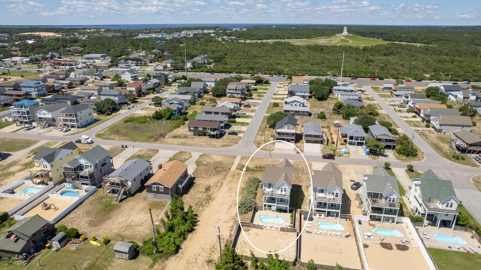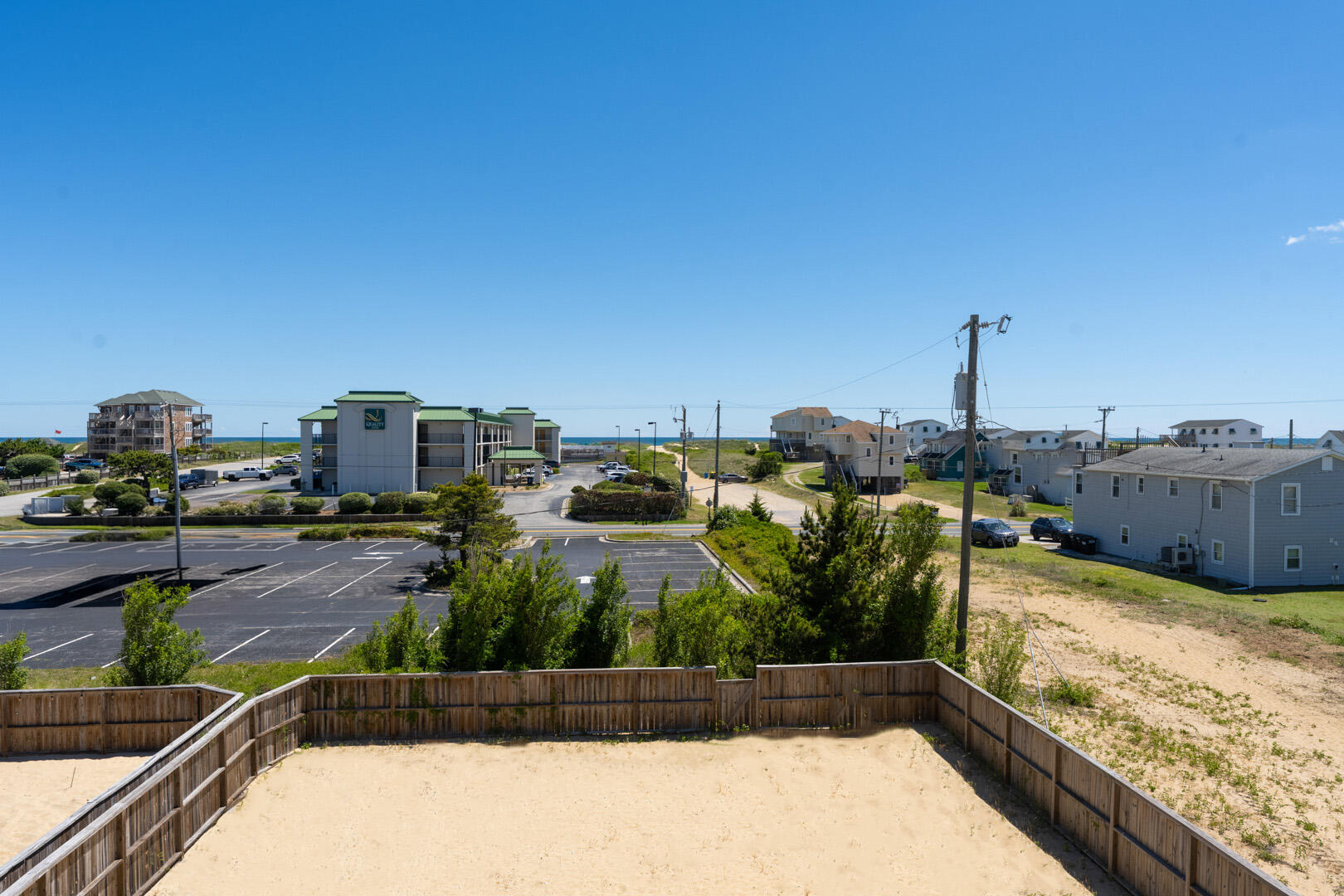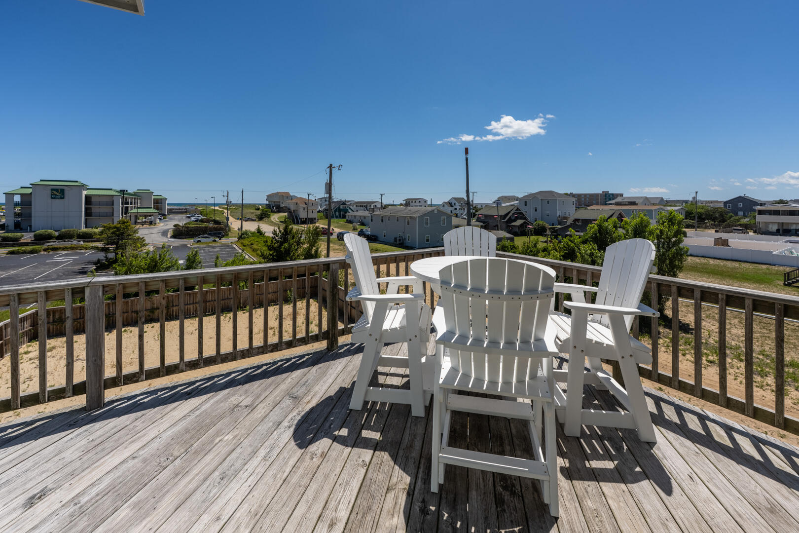 Convenient location with easy beach access, just a few minutes from sites like Wrights Brothers (can see memorial from house) and Jockey's Ridge State Park, close to restaurants. House was clean, comfortably furnished with several gathering areas; well equipped. Most of outdoor deck furniture is on the top floor deck - other decks only had one chair. Outdoor shower and hose by pool area. Accommodated pet, which fenced pool area and sand lot work well for our dog. House did have a few board games, puzzles. Is across street from a Budget Inn so not just residential area but enough separation, did have view of ocean. Information provided by property management was accurate.- John , Posted: 10/18/2021