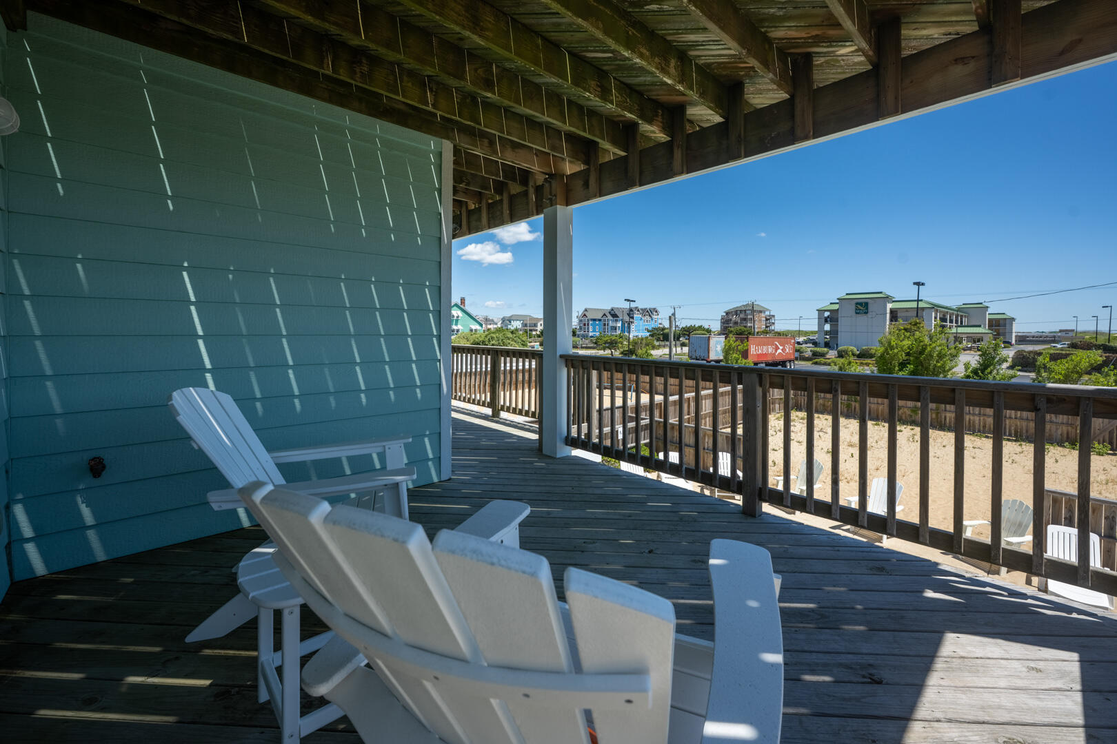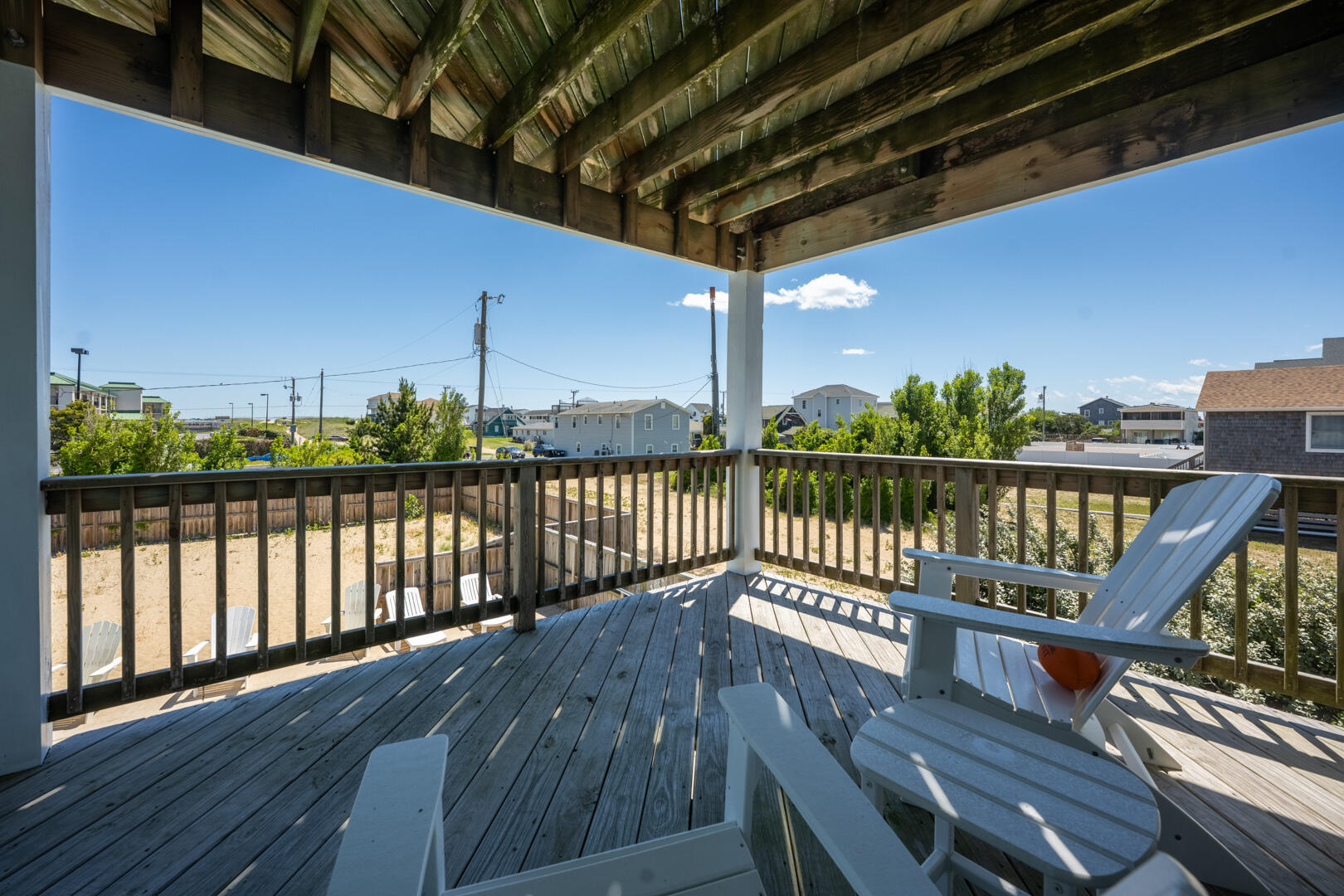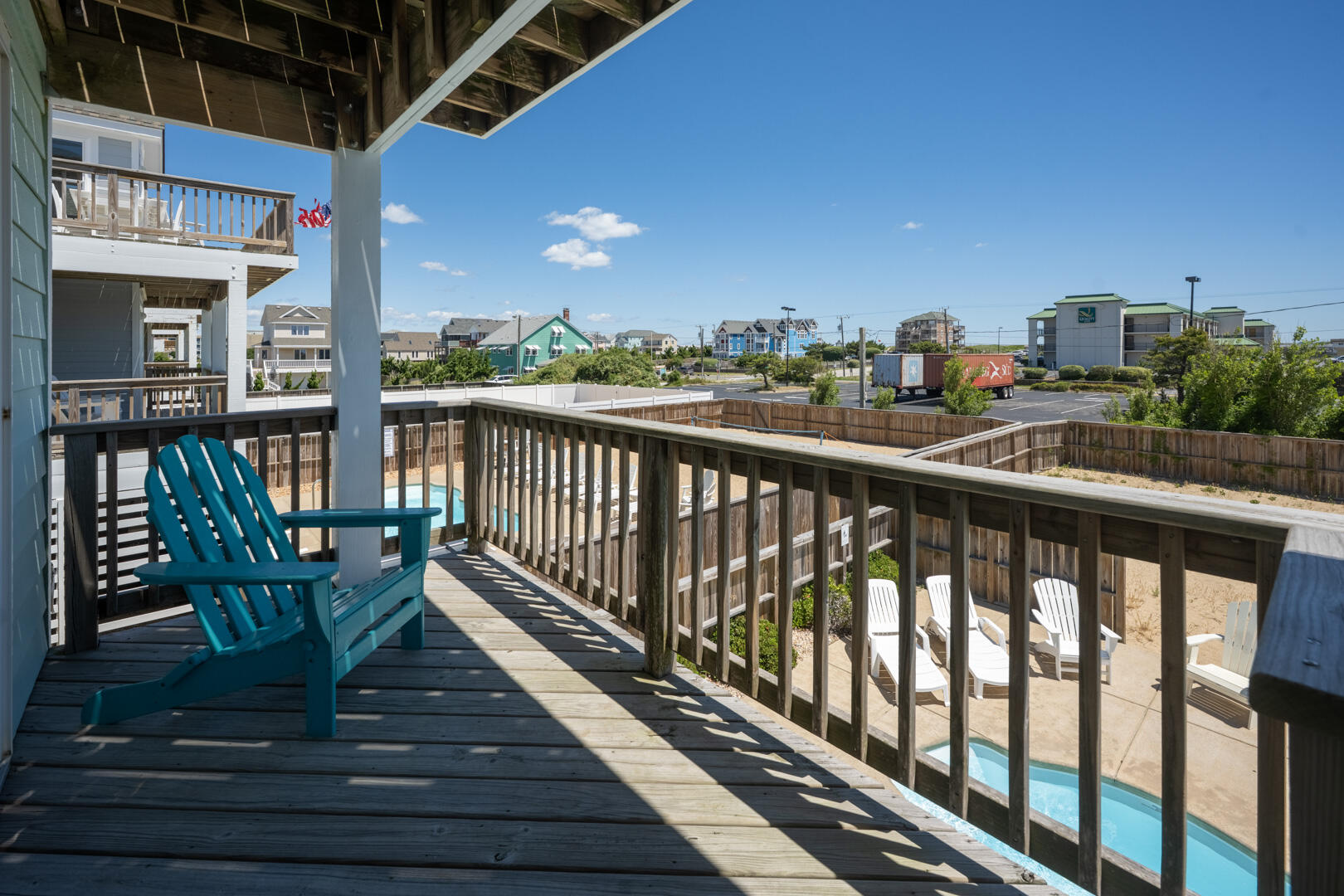 Convenient location with easy beach access, just a few minutes from sites like Wrights Brothers (can see memorial from house) and Jockey's Ridge State Park, close to restaurants. House was clean, comfortably furnished with several gathering areas; well equipped. Most of outdoor deck furniture is on the top floor deck - other decks only had one chair. Outdoor shower and hose by pool area. Accommodated pet, which fenced pool area and sand lot work well for our dog. House did have a few board games, puzzles. Is across street from a Budget Inn so not just residential area but enough separation, did have view of ocean. Information provided by property management was accurate.- John , Posted: 10/18/2021