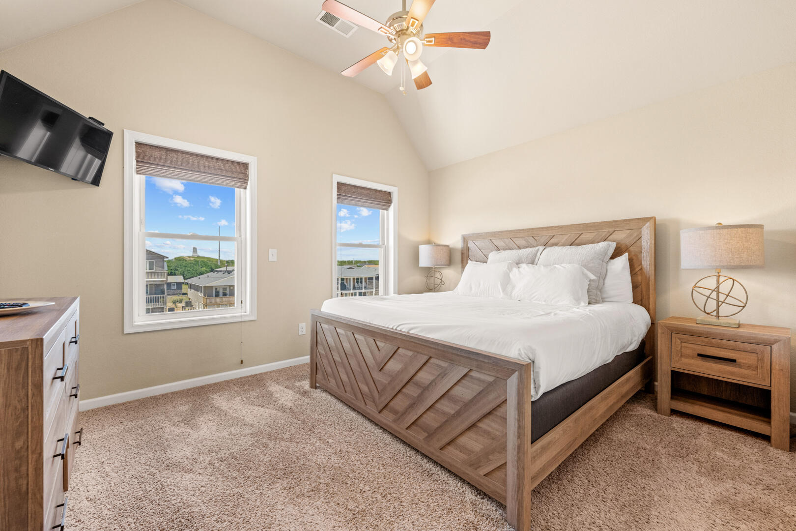 The third level with its cool coastal colors and nautical decor is a pleasure for the senses and will surely become your family's favorite spot to hang out. With a great room style design, conversation flows easily between kitchen, dining and living areas. Throw open the doors to bring the outside in or enjoy a quiet moment as you take in the ocean views. A Queen En Suite and additional half bath complete the third level of Bikini Bottom.