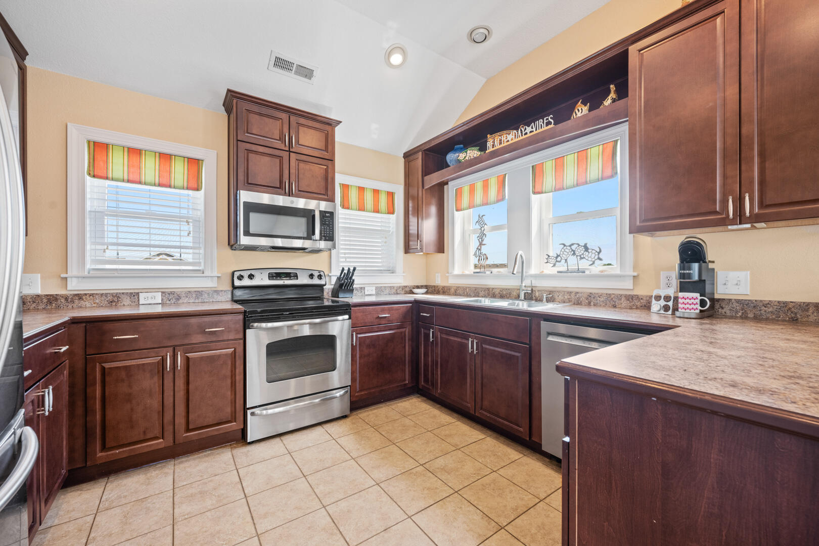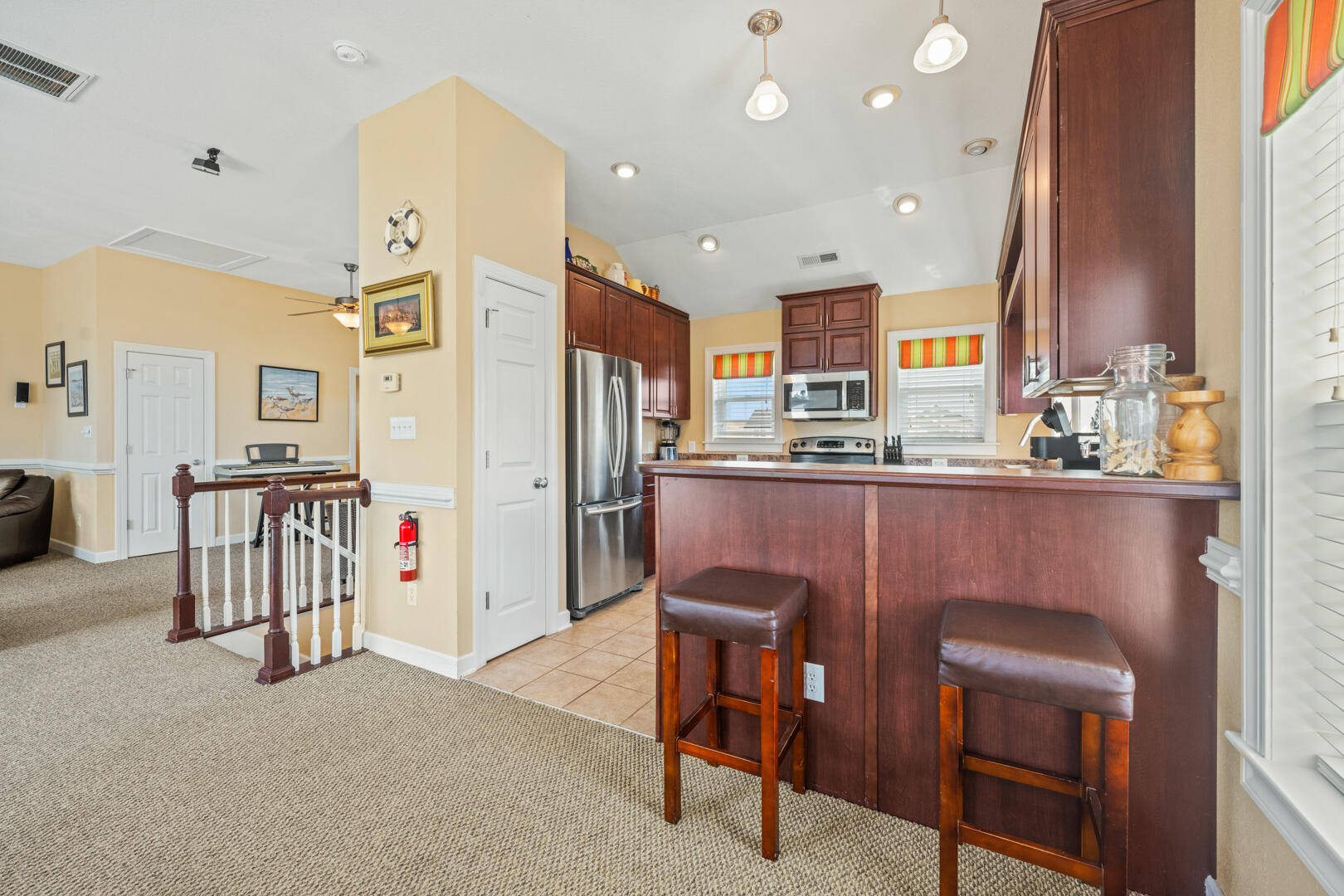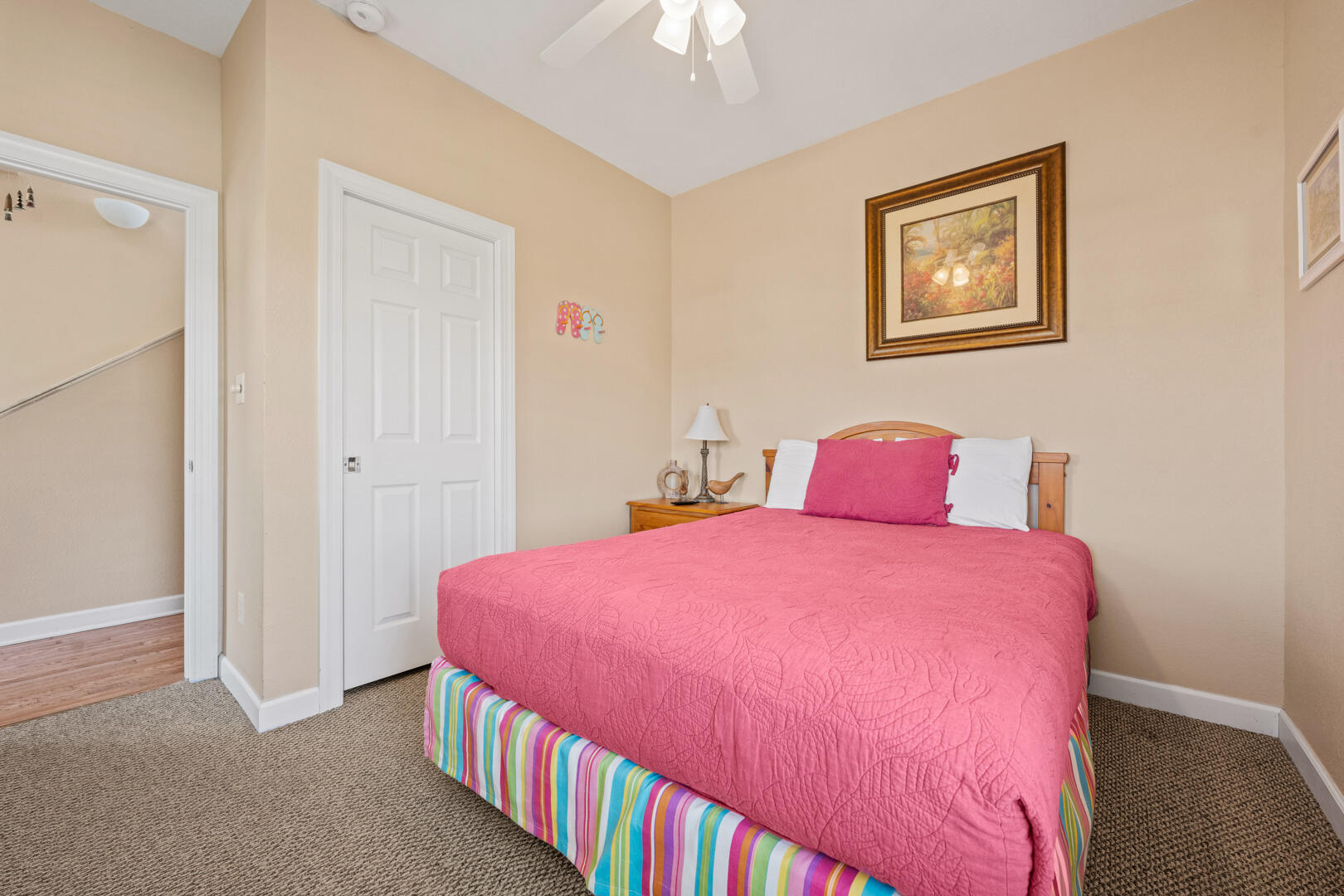 Relax in the Queen En Suite, with accent lighting, flat screen TV, and access out to the balcony. The second bedroom also features a Queen bed with access to the balcony, a flat screen TV, and a common hallway bathroom shared with the third bedroom. The third bedroom features a Queen bed and flat screen TV. You will also find the washer and dryer to be located inside of a hall closet on this level.