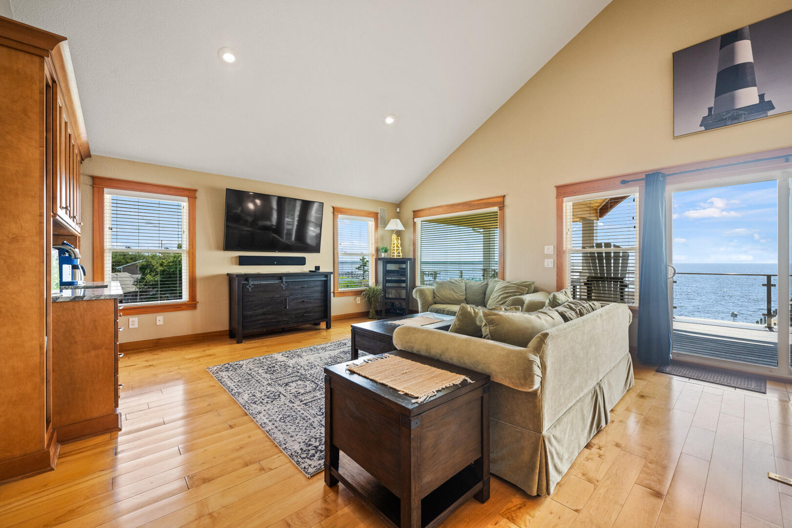 With Kitty Hawk Bay as your backyard in this stunning home, you are never far from the water.