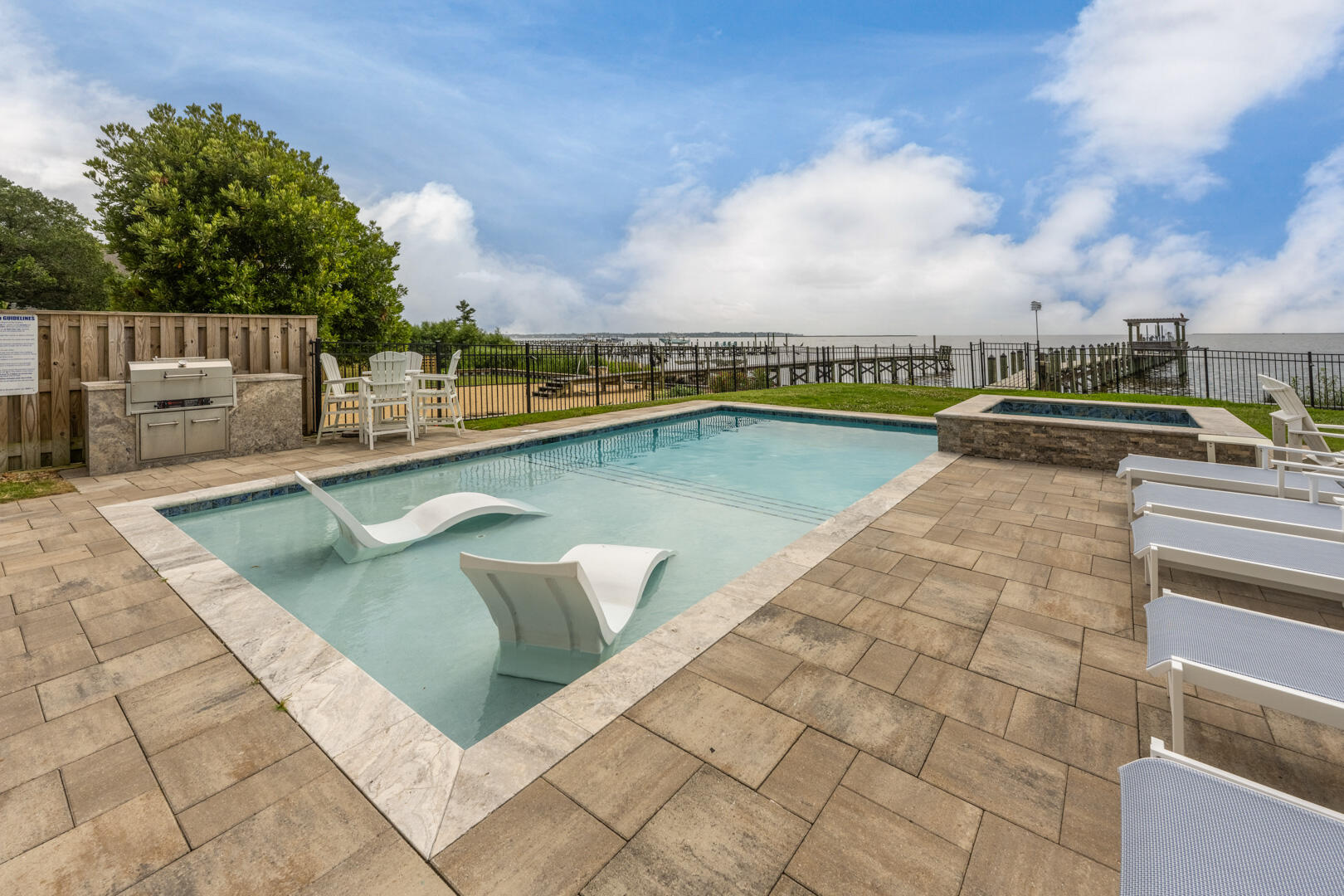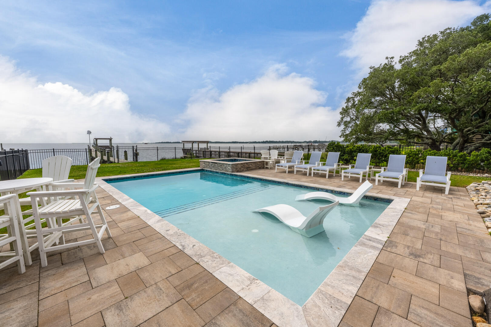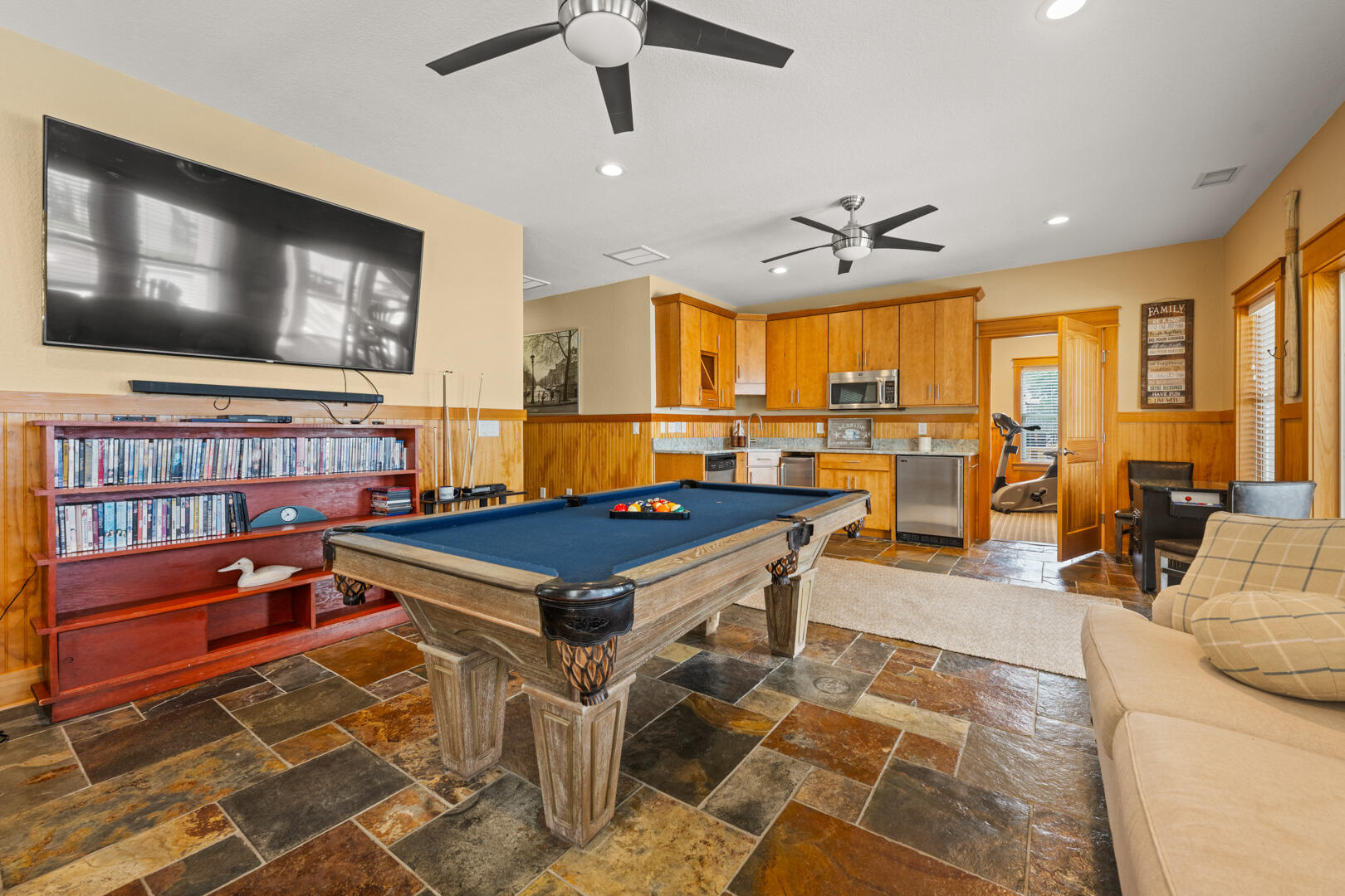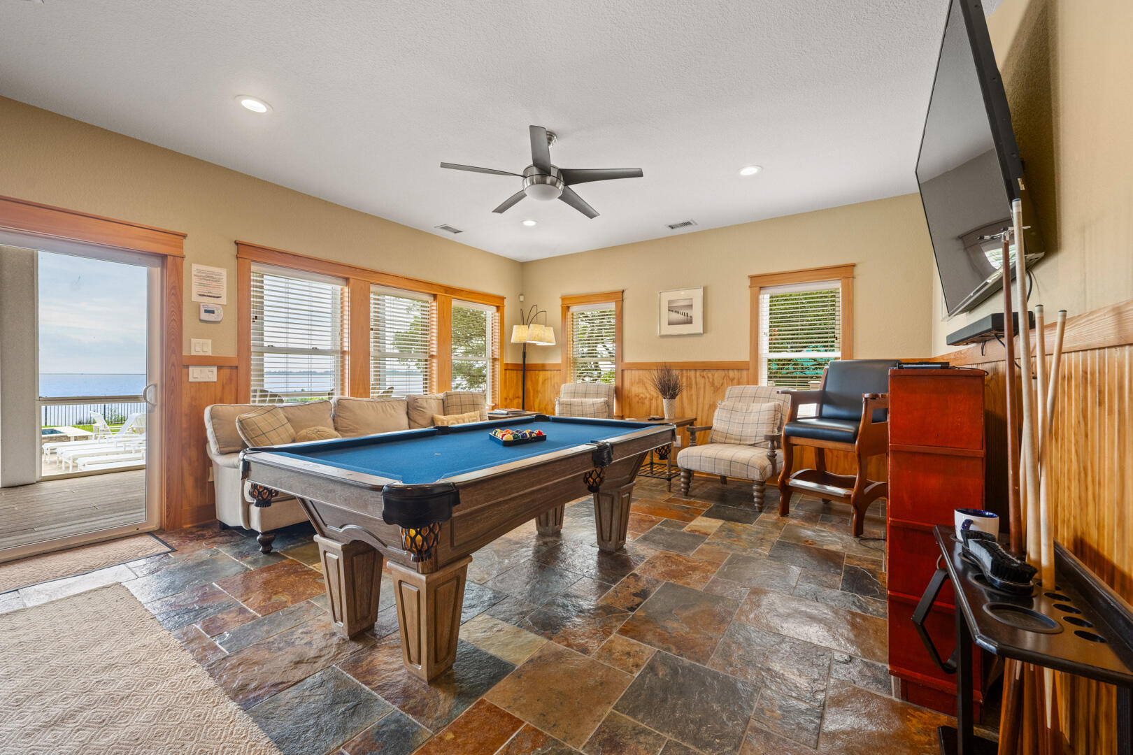 The first level is where the action takes place. This level features a pool table, a table-top multi-cade, and a gym with an adjoining sauna. You will always have a place to be active, in or outside the home! There is s an additional living area with an adjacent mini-kitchen, which comes equipped with a stove, microwave, ice maker and full fridge. An oversized bedroom that has a king bed and a Duo-Bunk is also located on this level. Other amenities are provided on this level such as a full bathroom, which is handicap accessible. Step out back to a huge screened porch that will seat 10 and an outside shower. This porch overlooks the backyard that boasts a new concrete pool with a built-in waterfall hot tub and an adjacent fire pit. The house also has its own private pier and dock with sitting area and fishing area accessible from the rear pool area. The back yard of this home is fully grassed and irrigated and will be a great place for family picnics and cornhole competitions while enjoying the most magnificent Sunsets!