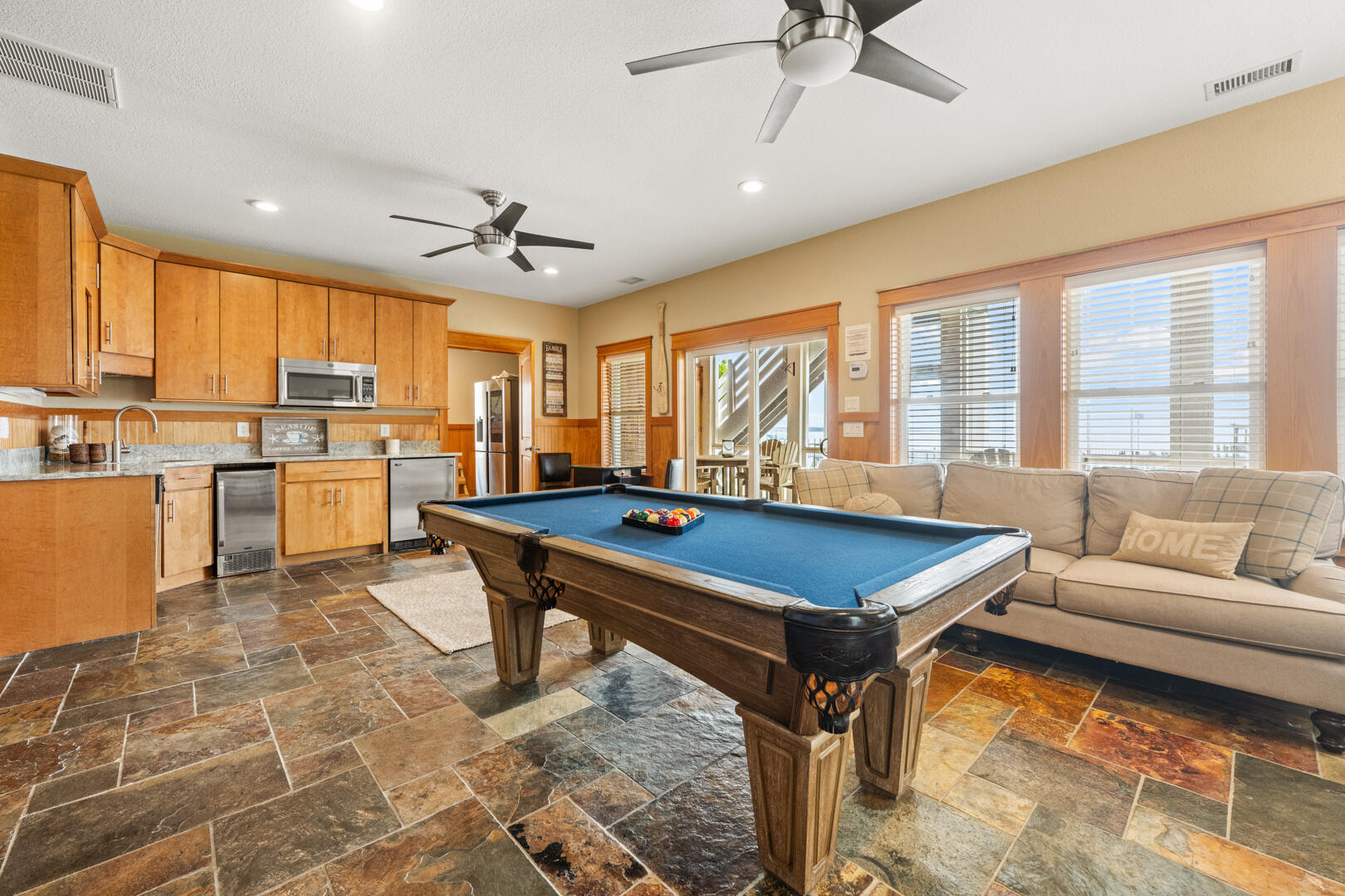 Enjoy some friendly competition at the table top, Multicade or a game of pool while watching the large, flat screen on the living room TV. Some days, however, you might choose to explore all that the Island has to offer. With the sporting dunes of Nags Head to your south, the historic Roanoke Island to the south-west and the wild horses of Corolla to your north, there is a reason Kill Devil Hills is a perfect place for your OBX vacation.