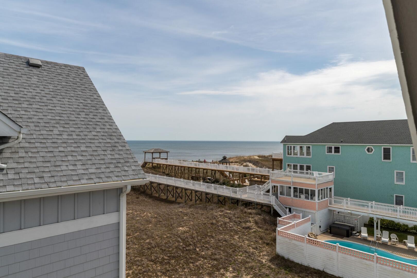 Up on the third level is where memories are sure to be created! Look out the vast windows and catch a glimpse of the Atlantic Ocean staring at you, offering beautiful ocean views. Feel free to open a window to catch some breezes off the beach. On this level, you will find a full, modern kitchen with bar stool seating, a half bathroom, and a comfortable great room with an electric fireplace. There is a dining table to enjoy a great meal together or play your favorite board games. There are two sitting areas on this level where you can enjoy pure relaxation. Venture out onto the outdoor deck and enjoy your favorite beverage while you listen to the outdoor sounds of the Outer Banks.