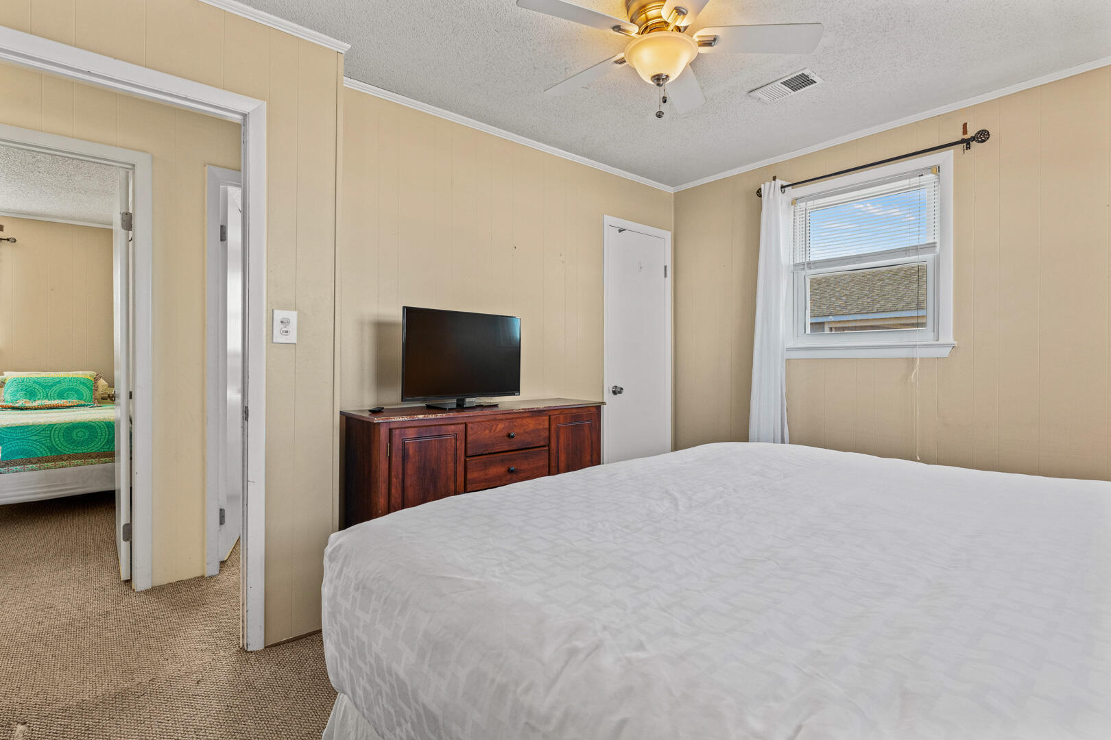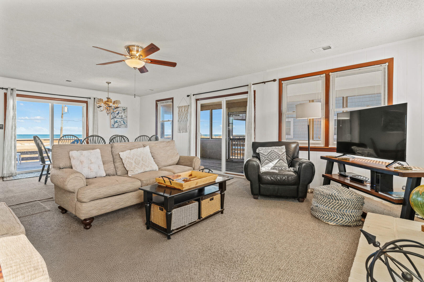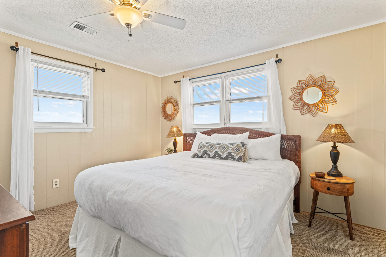 Enjoy one-level vacationing! Dawn Patrol has one King En Suite, two Queen bedrooms, one bedroom with two single beds, and a shared bathroom down the hall. With a fully equipped kitchen, you have everything you need to prepare a delicious meal. The relaxing living room is designed for your family game or movie night, and the ocean views from this room will have you mesmerized. This home also has a screened-in deck where you can read a good book while listening to the waves break in the background. After a day well spent at the beach, rinse off the salt and sand in the refreshing outdoor shower. Dawn Patrol is pet-friendly with a fenced-in backyard, so bring your furry friend along!