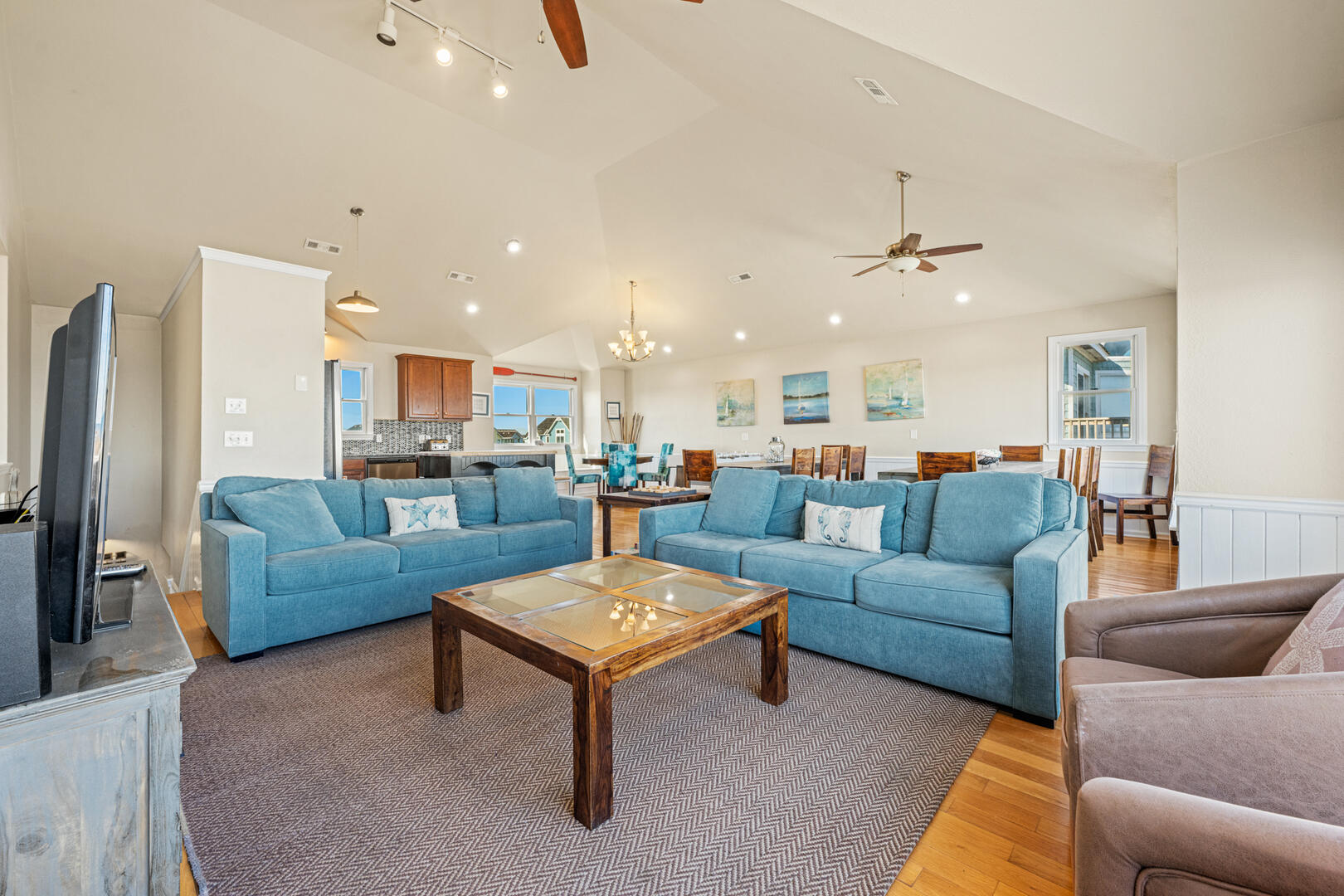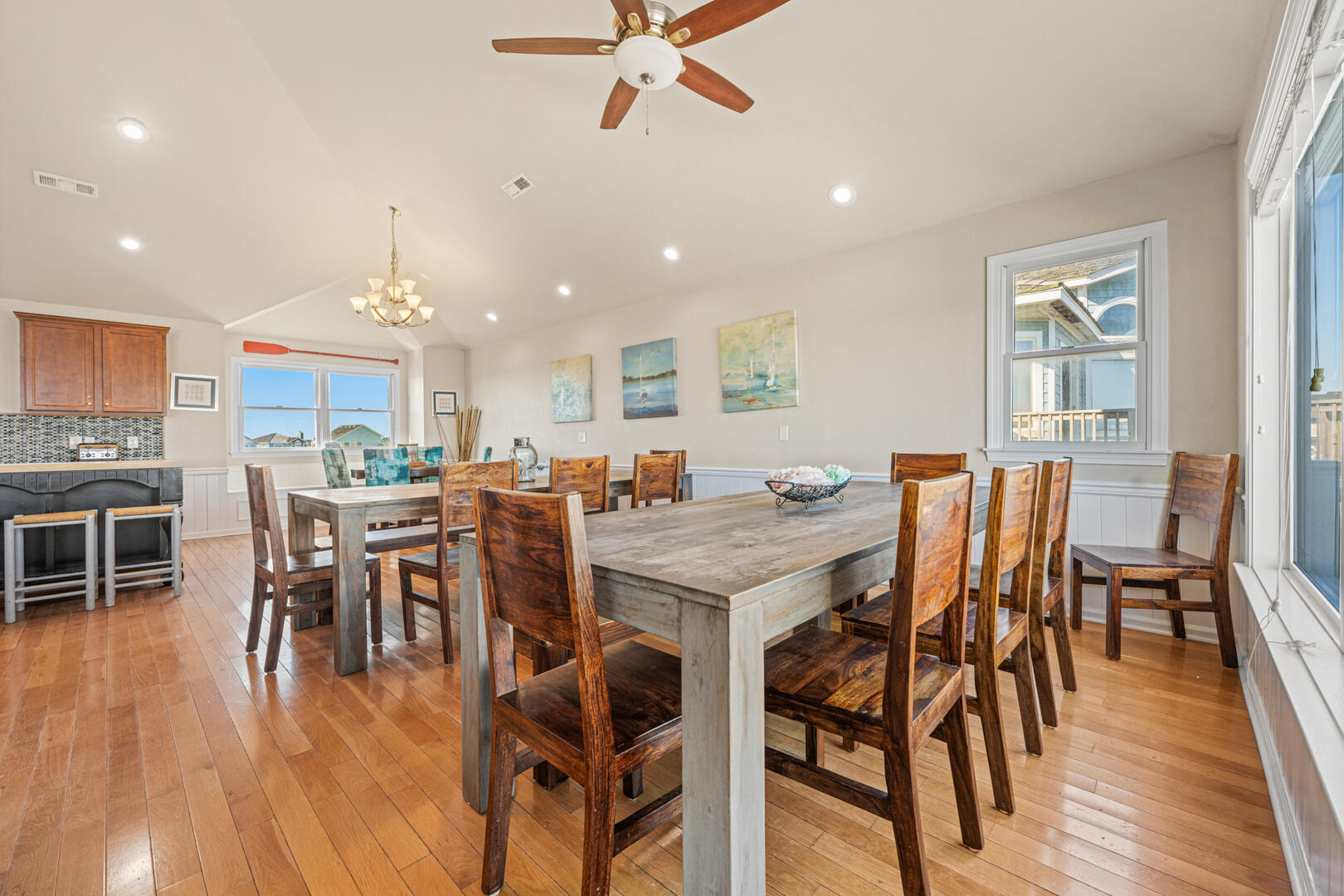 Inside, Sundancer is designed for gathering and relaxation, with a gourmet kitchen, dining for up to 22 guests, and multiple living spaces ideal for families and groups. Guests can also take advantage of the community’s exclusive soundside parks and piers for fishing, crabbing, or sunset watching. With KEES’ signature FlexStay™ program, pet-friendly accommodations, and a convenient Nags Head location close to shopping, dining, and attractions, Sundancer offers everything you need for an unforgettable Outer Banks vacation.