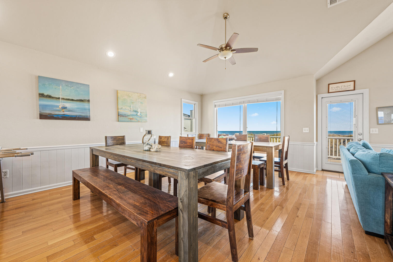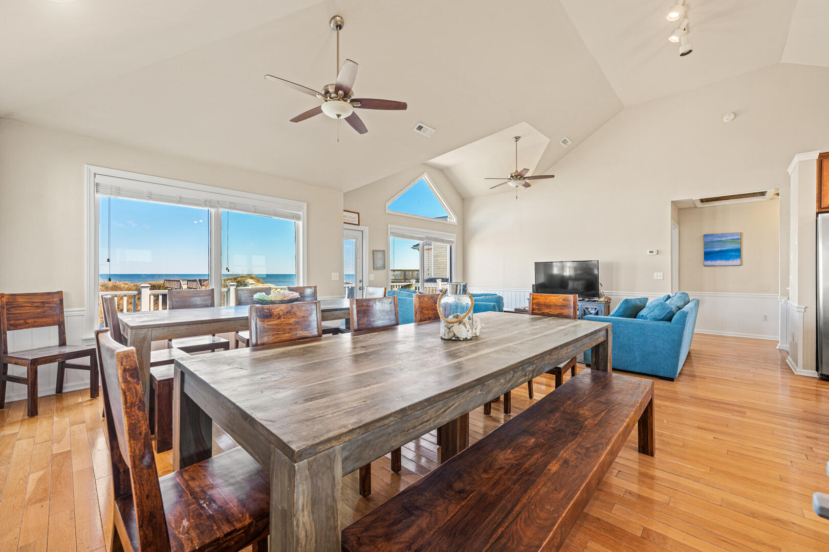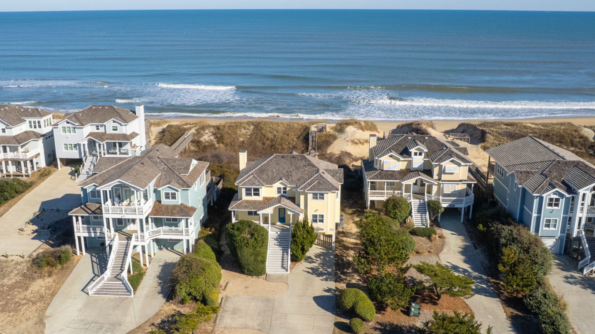 Sundancer is a stunning oceanfront retreat in the sought-after Sound-to-Sea community of the Village at Nags Head. This classic Carolina-style, eight-bedroom home offers the perfect blend of comfort and coastal elegance, featuring an open-concept layout, real hardwood flooring, a relaxing sauna, and expansive windows that showcase breathtaking ocean views and natural light throughout. Enjoy direct beach access from your private dune-top walkway, unwind by the oceanfront heated pool and hot tub, and take in the peaceful rhythm of the Outer Banks from the spacious decks.
