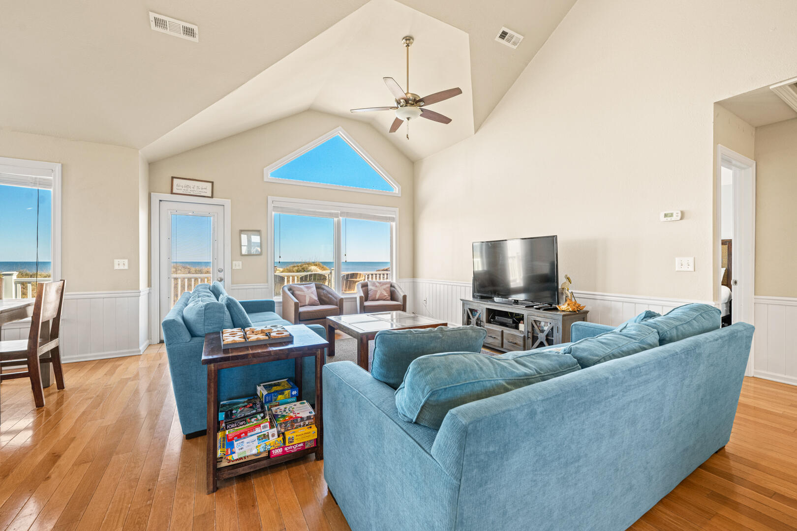 spectacular view from the entire living room room and kitchen room area, and the main room upstairs, you wake up with a view to the beach! Everything we needed was in the kitchen even games! My family and I loved it! Had a blast in the sauna as well.- Vanessa , Posted: 05/19/2020