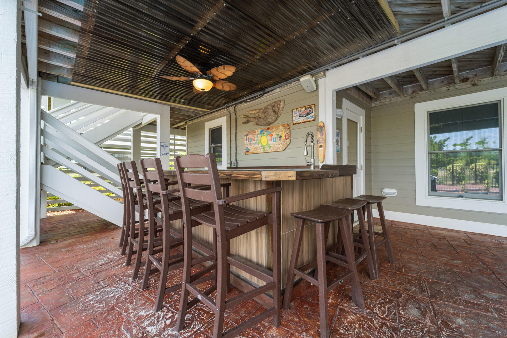 The privacy of the outdoor entertainment area is a rare treat, with green space behind you and mature foliage on the sides. Relax the day away in the 32 x 12 private pool or lounging in the sun. A covered deck provides a cooler space to enjoy an outdoor meal or even a refreshing afternoon nap. The gorgeous, blue-tiled bar is a fun gathering space to raise a glass to each other and your good fortune! Marvel at the sound front sunsets from the soothing bubbles of the 6-person hot tub. One of the advantages of Tranquil Turtle are the common spaces on each floor. It gives everyone a chance to claim their own spot and enjoy a few moments of solitude. The first level has a game room with a fun foosball table, sleeper sofa, and a wet bar. Just off the game room, you will find a King En Suite complete with a private access to the backyard. You will also find a laundry area to round off the first level.
