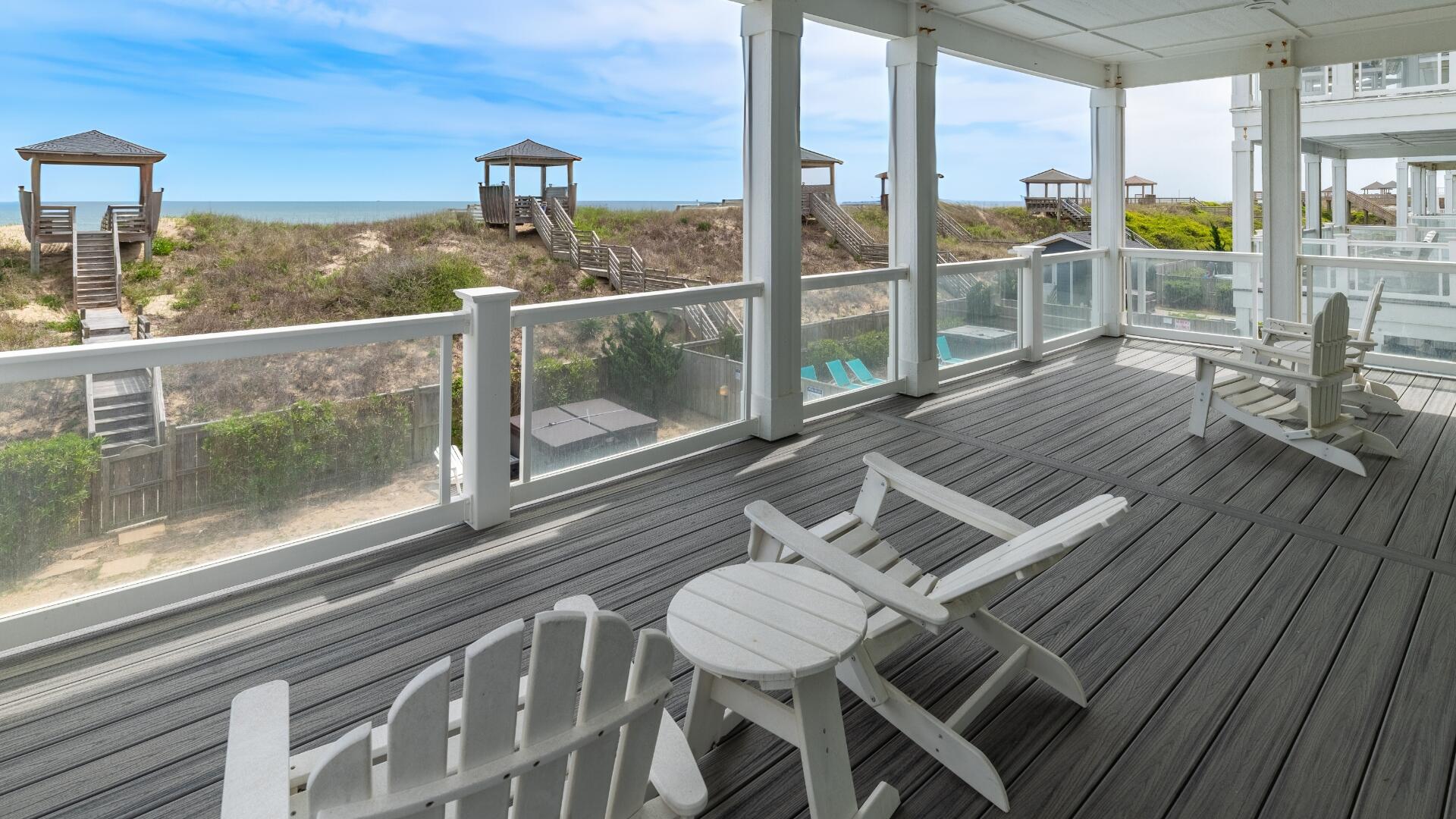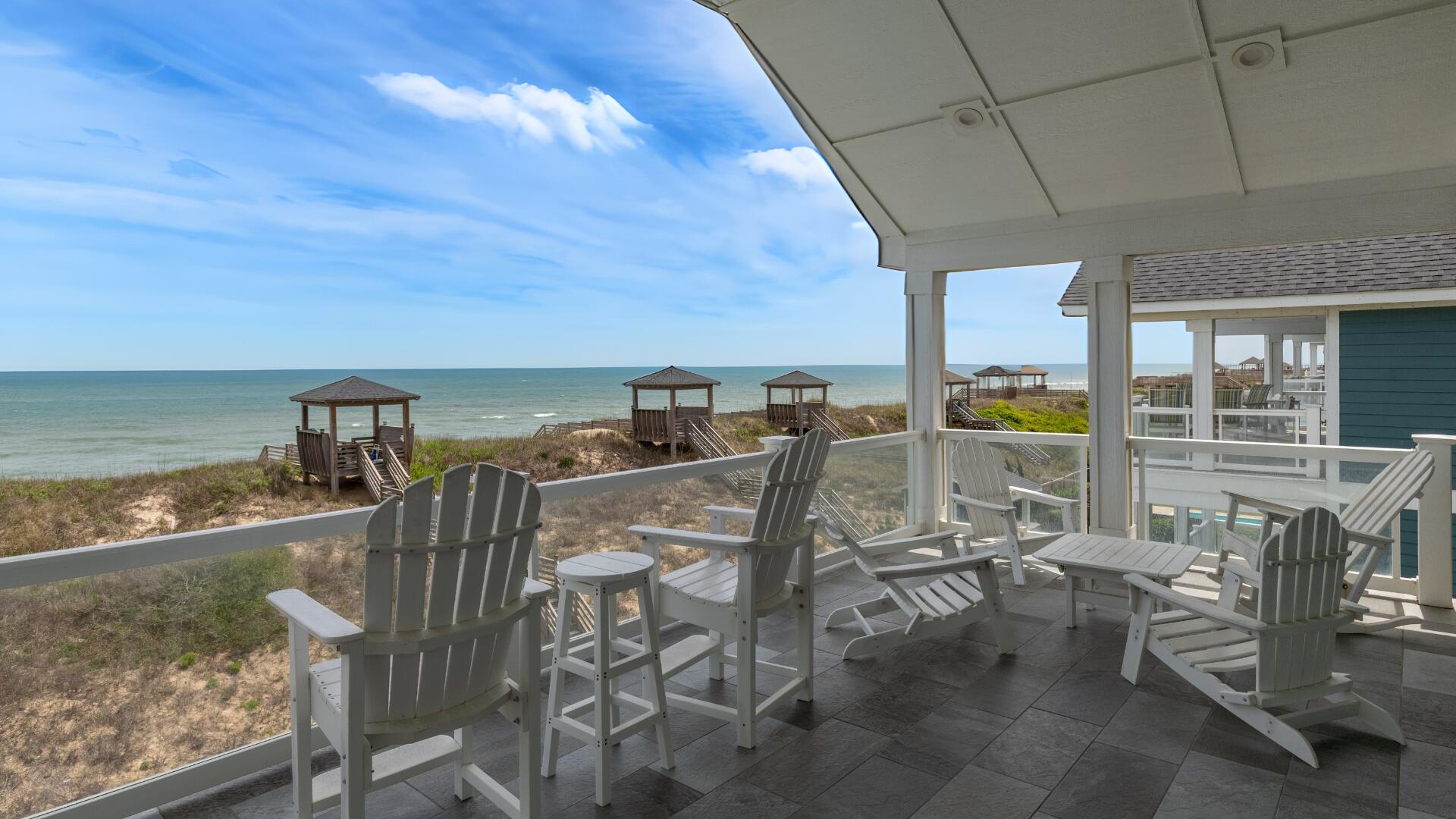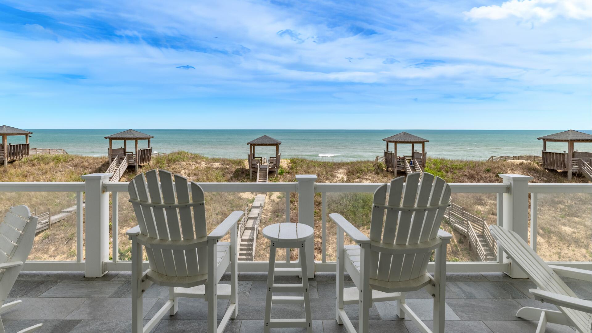 Affectionately named after one of the members of the "Lost Colony" of 1587, Eleanor Dare is a premier property. Boasting over 5,000 square feet of living area with Eight En Suites, this home is a trailblazer within its neighboring vacation properties. Enjoy sweeping, unobstructed ocean views from the top-level and easy beach access from the private, dune-top stairs and gazebo.