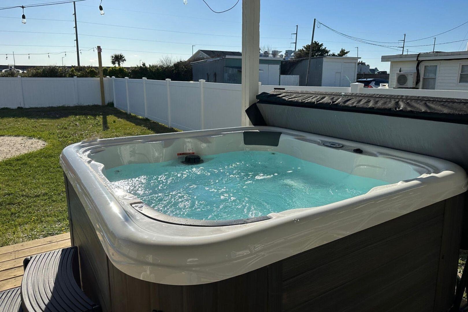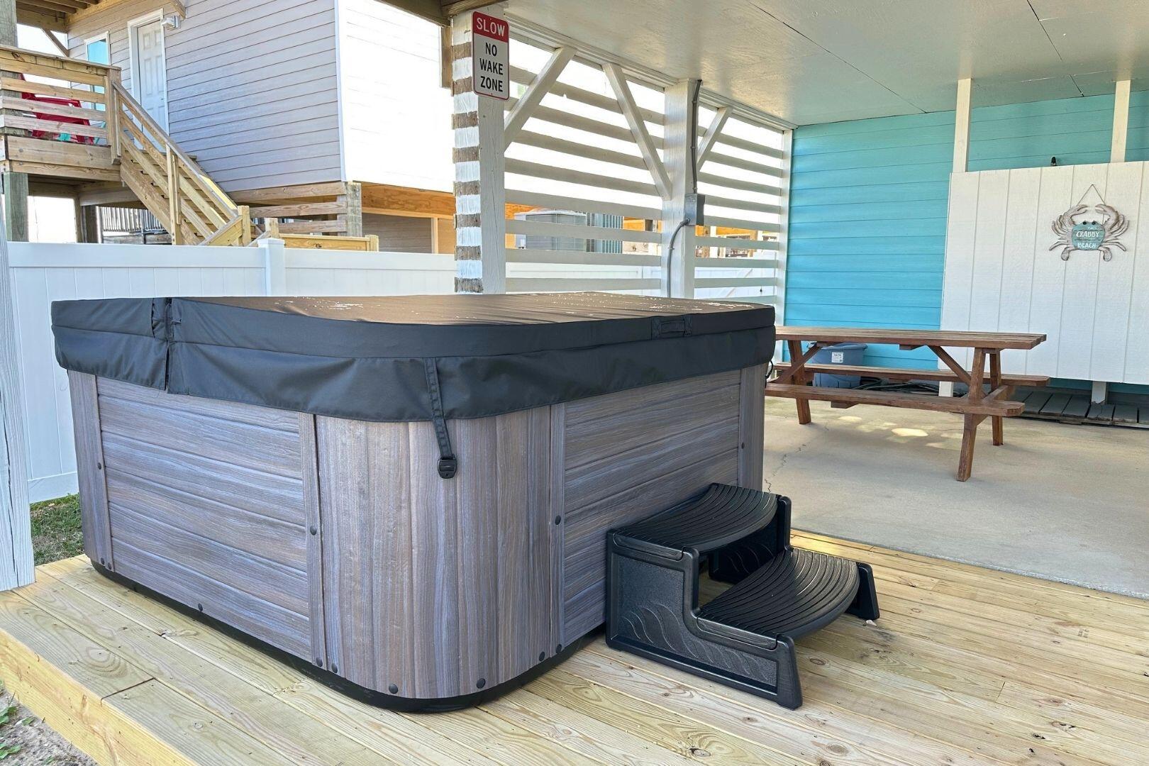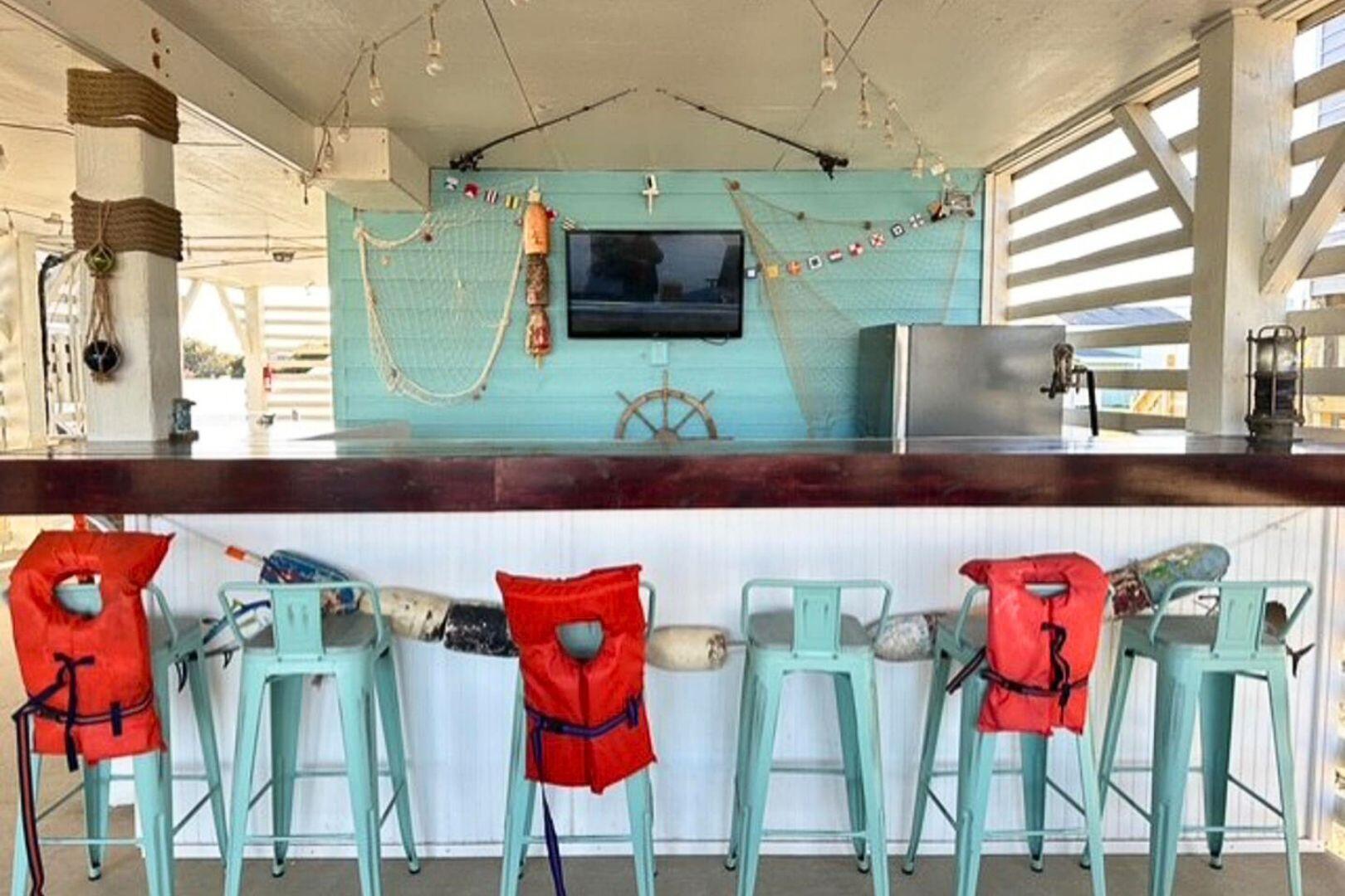The outside of the home is just as cozy as the inside. Enjoy your coffee on the front deck and watch the sunrise with a sneak peek of the waves crashing. In the evening you can enjoy the back deck and watch the sunset over the sound. The backyard has been updated to include string lighting with a fire pit for roasting marshmallows or just enjoying a fire on a cooler evening. Relax in the private hot tub for the ultimate in evening relaxation and stargazing. Under the house you can find a large Tiki Bar area to enjoy a cold beverage with friends and family. There is a full-size refrigerator and an ice maker that makes 100lbs of ice a day. This makes it easy to fill up the cooler each day for the beach. After a day at the beach, enjoy the outdoor shower to rinse off. The outdoor flat-screen TV completes the outdoor area and ensures you won’t miss the local news, sporting events, or your favorite show. Grill up lunch or dinner on the charcoal and/or gas grill. There is a picnic table for extra seating. Challenge your friends and family to a game on the outdoor ping pong table.