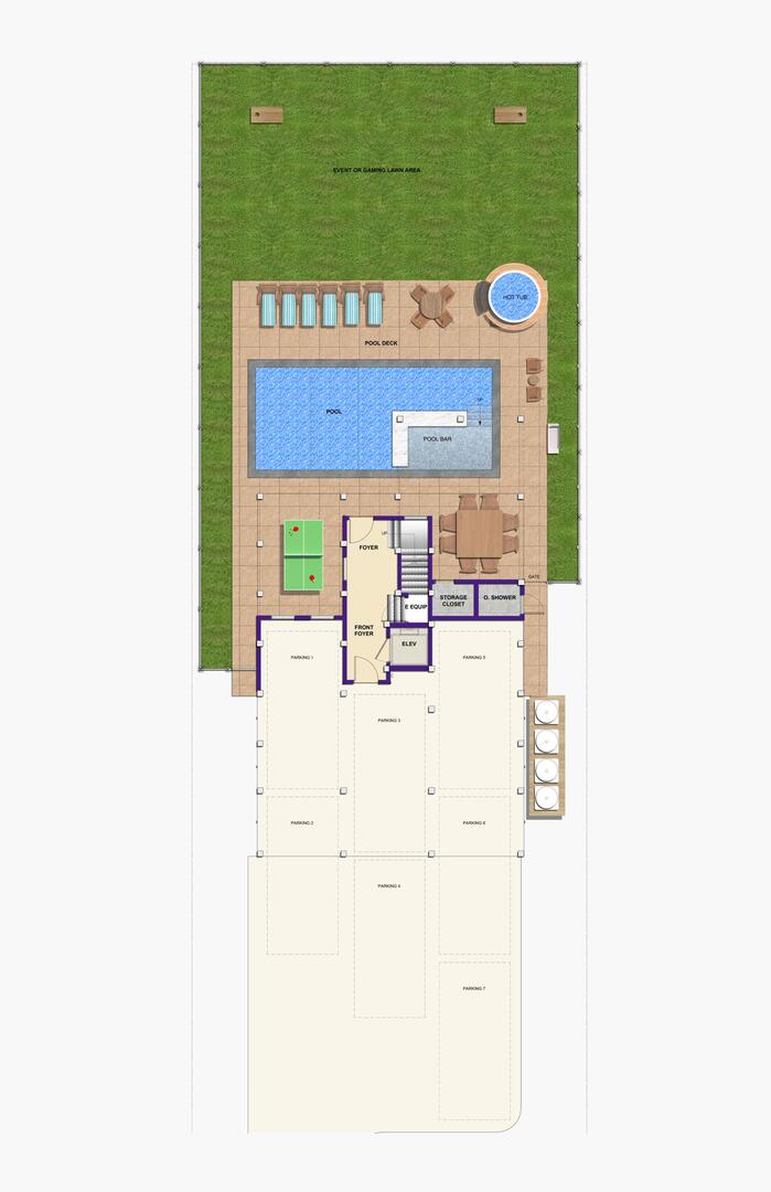 This ground-level outdoor escape has everything you need for fun in the sun. Take a dip in the oversized pool, soak your cares away in the hot tub, or rinse off from the beach in the outdoor shower. Kids and adults alike will love the ping pong table just steps from the pool. For added convenience, there’s also an outdoor cabana bathroom and easy access to the elevator inside.Read More About the First Level