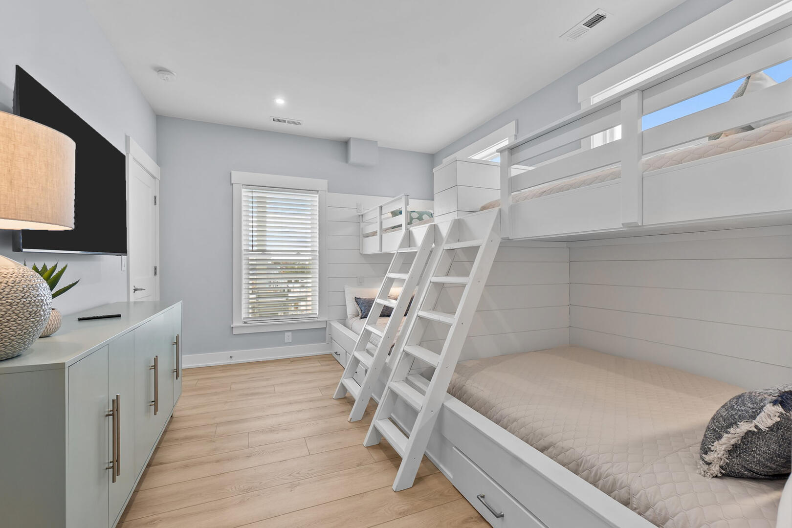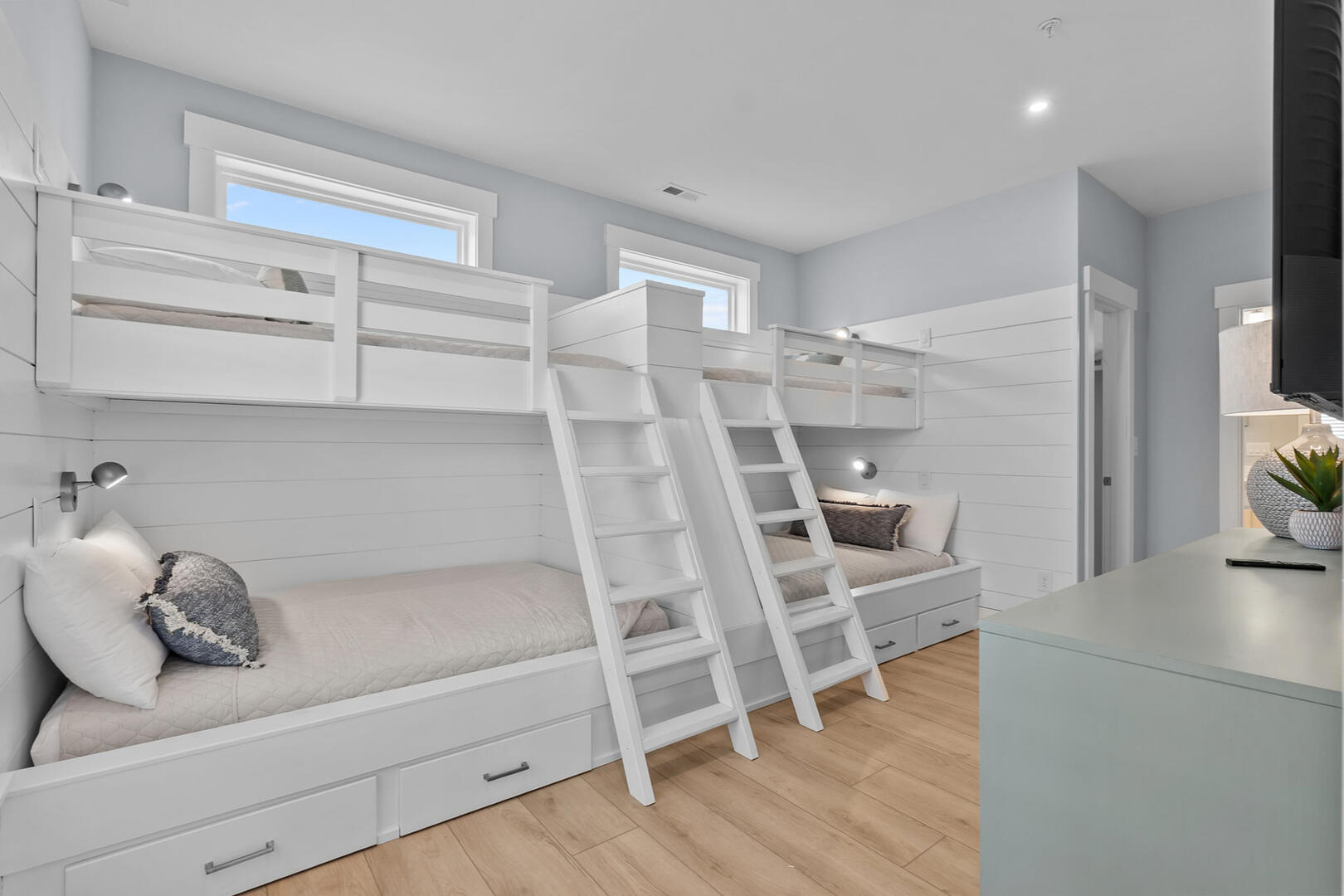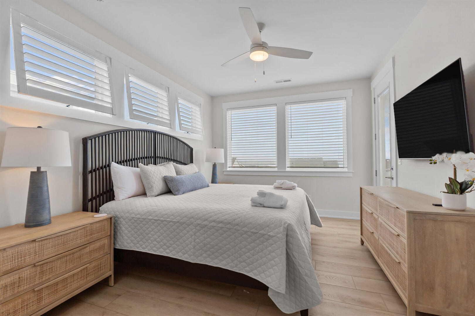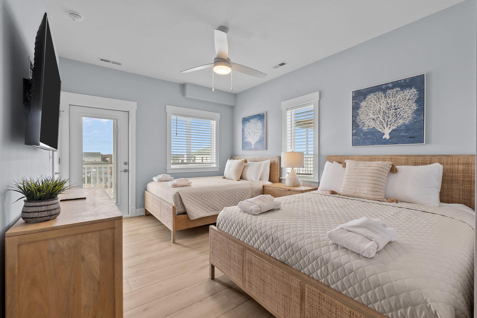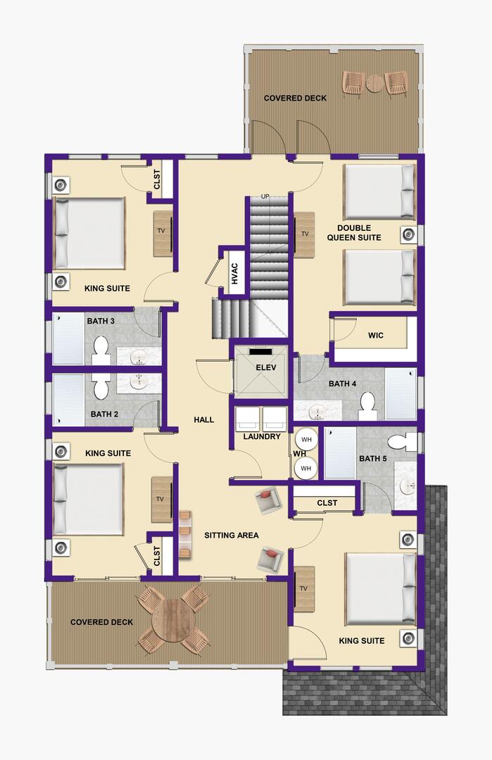This level offers four spacious En Suites, including a wheelchair-accessible King En Suite with a seated shower. The Two Queen En Suite boasts walk-in closets and deck access, perfect for relaxing with a book or ocean breeze. A comfortable sitting area provides a peaceful retreat, and the full laundry room ensures your group stays fresh throughout your stay.Read More About the Third Level