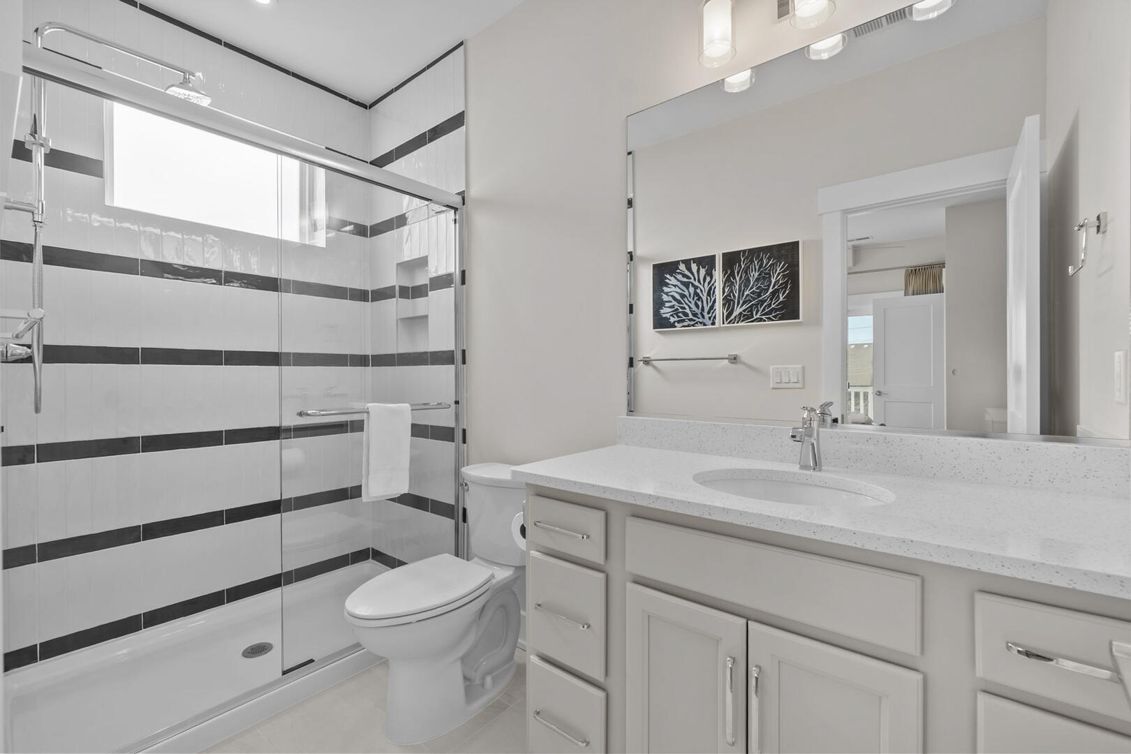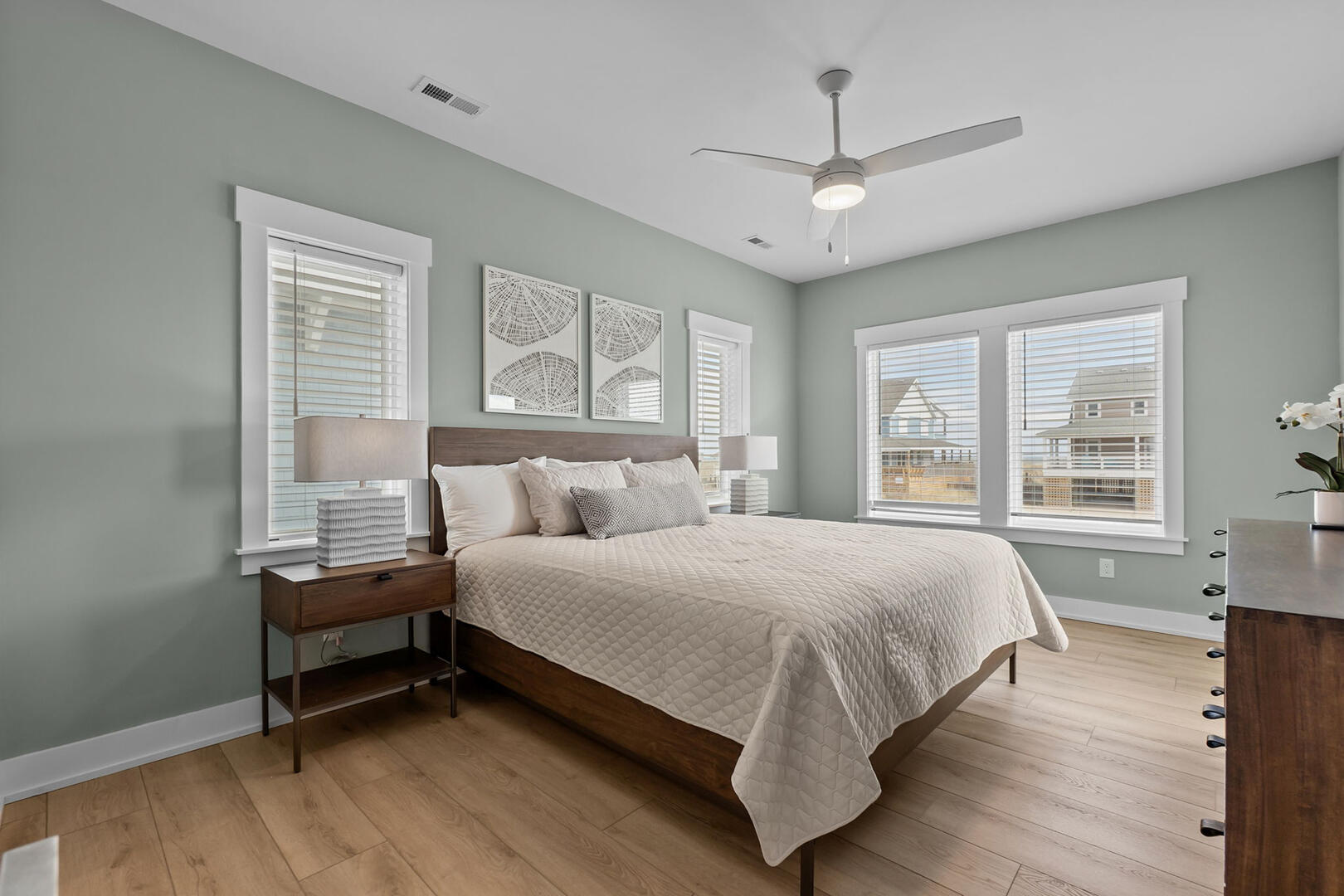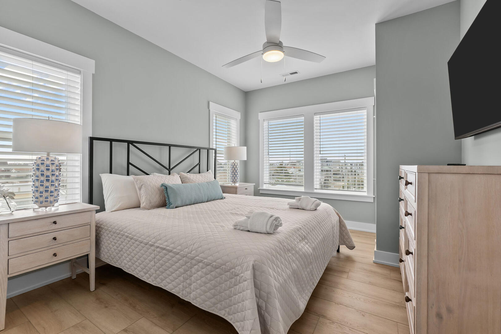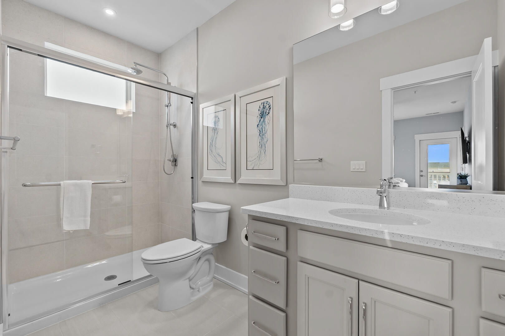 This level offers four spacious En Suites, including a wheelchair-accessible King En Suite with a seated shower. The Two Queen En Suite boasts walk-in closets and deck access, perfect for relaxing with a book or ocean breeze. A comfortable sitting area provides a peaceful retreat, and the full laundry room ensures your group stays fresh throughout your stay.Read More About the Third Level