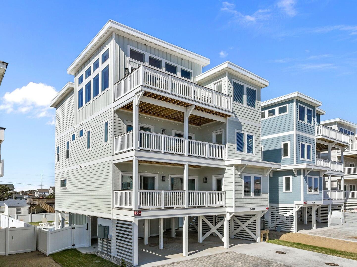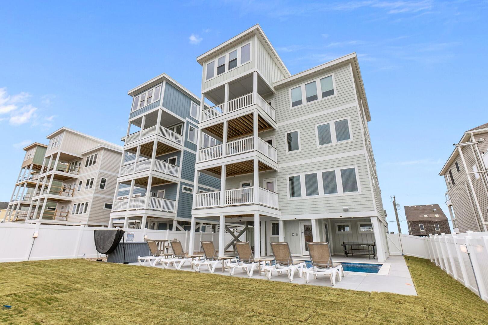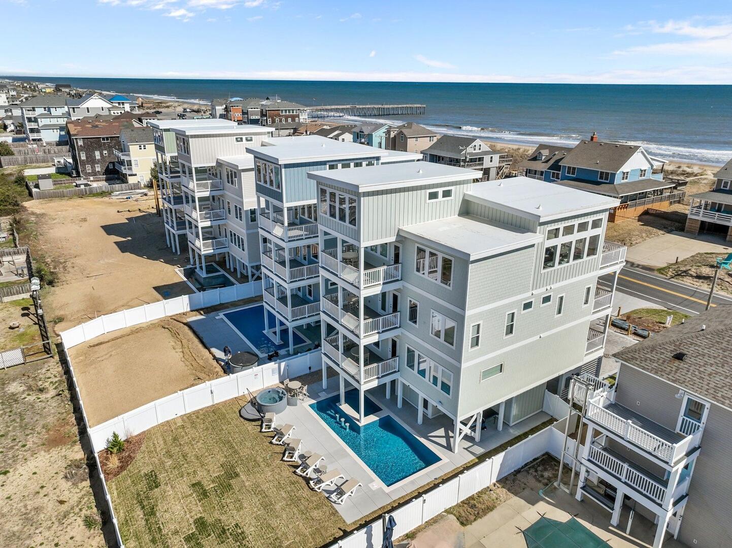 Brand new home opening March 2026! Be among the first to stay at DevOcean, a stunning newly constructed 5 story, 7-bedroom, 10-bathroom home located in the sought-after Atlantic Shores community. This semi-oceanfront showstopper is designed for elevated Outer Banks getaways with a fenced-in backyard oasis, luxury interiors, modern entertainment, and panoramic views of the Atlantic Ocean and Avalon Pier.