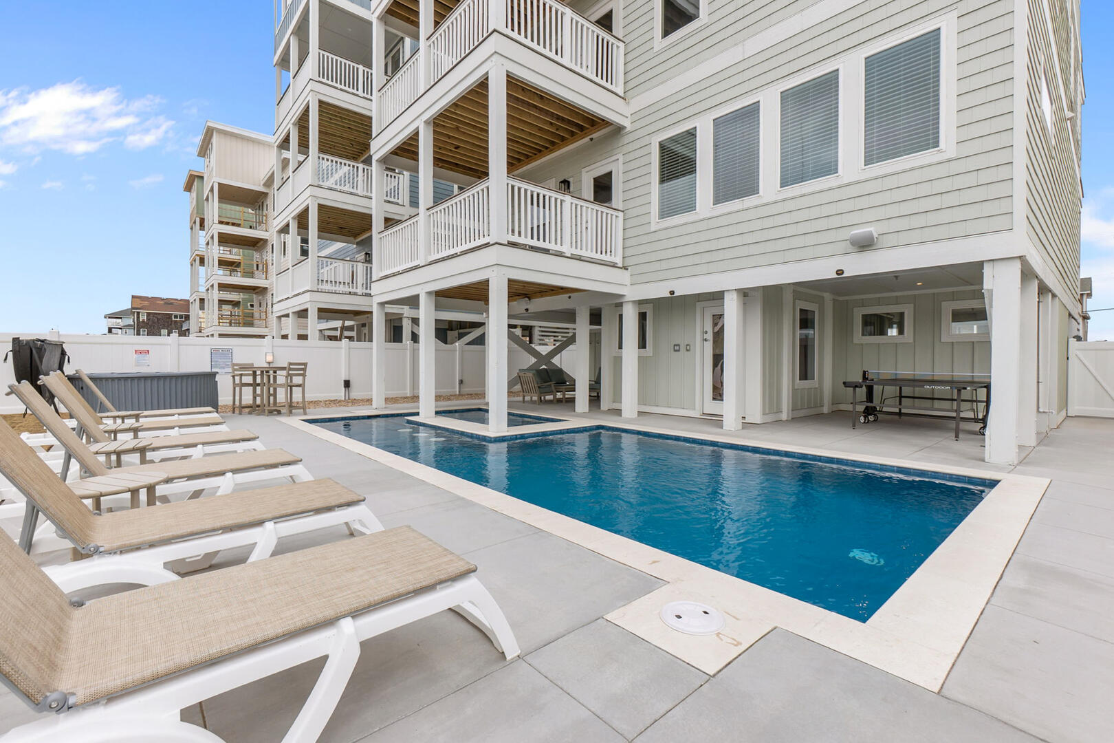 Guests of our home enjoy access to the exclusive Village Beach Club, a premier oceanfront retreat in the heart of Nags Head, just 8.9 miles from DevOcean.