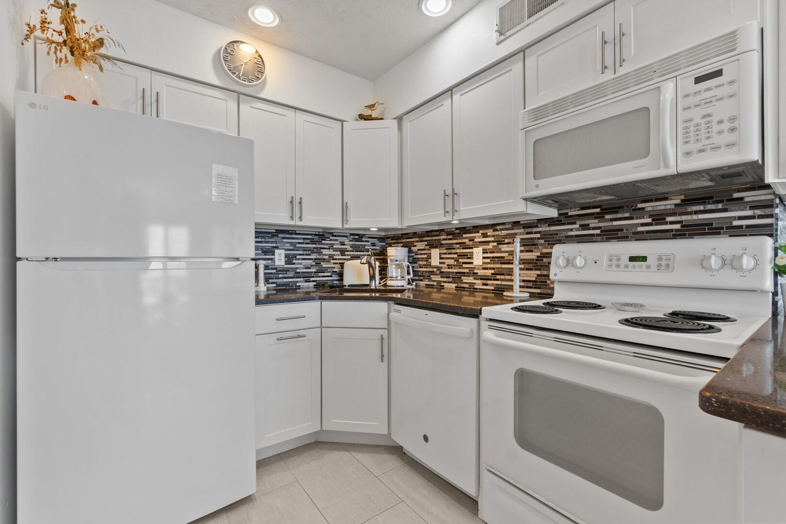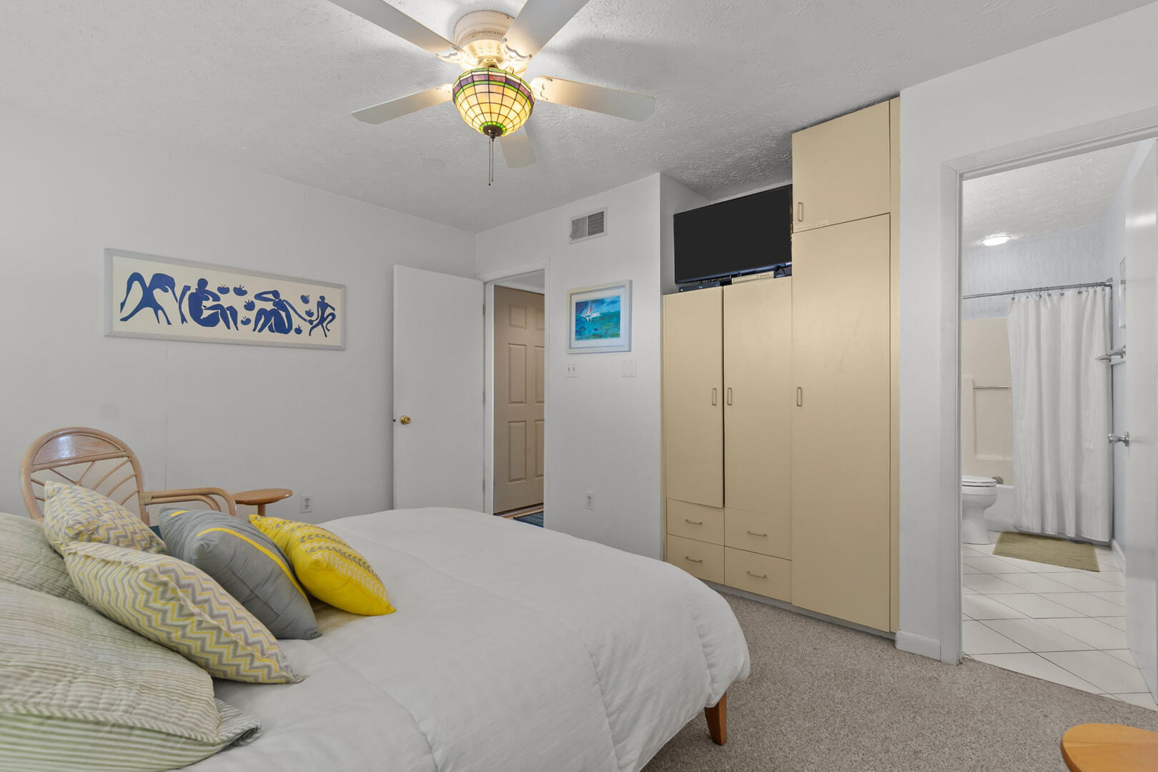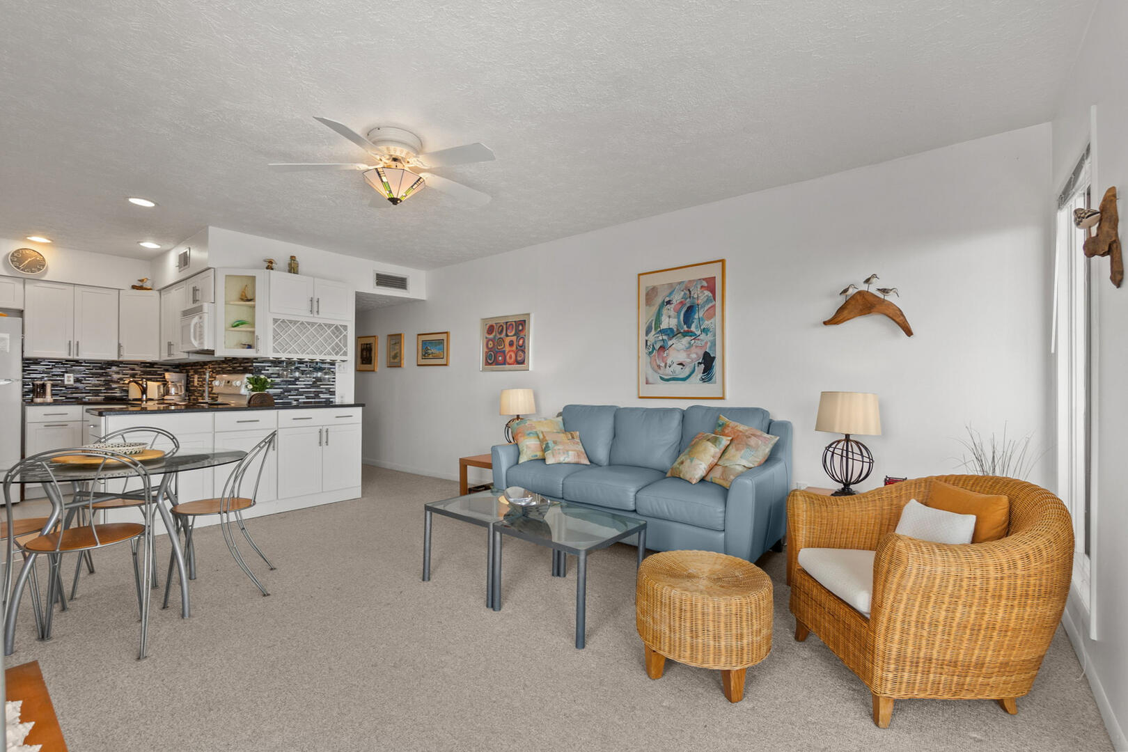 Sleeping accommodations include a Queen En Suite and a Twin over Twin alcove Bunk Set in the hallway, making this condo ideal for couples, small families, or groups. A second full bathroom is also located in the hall.