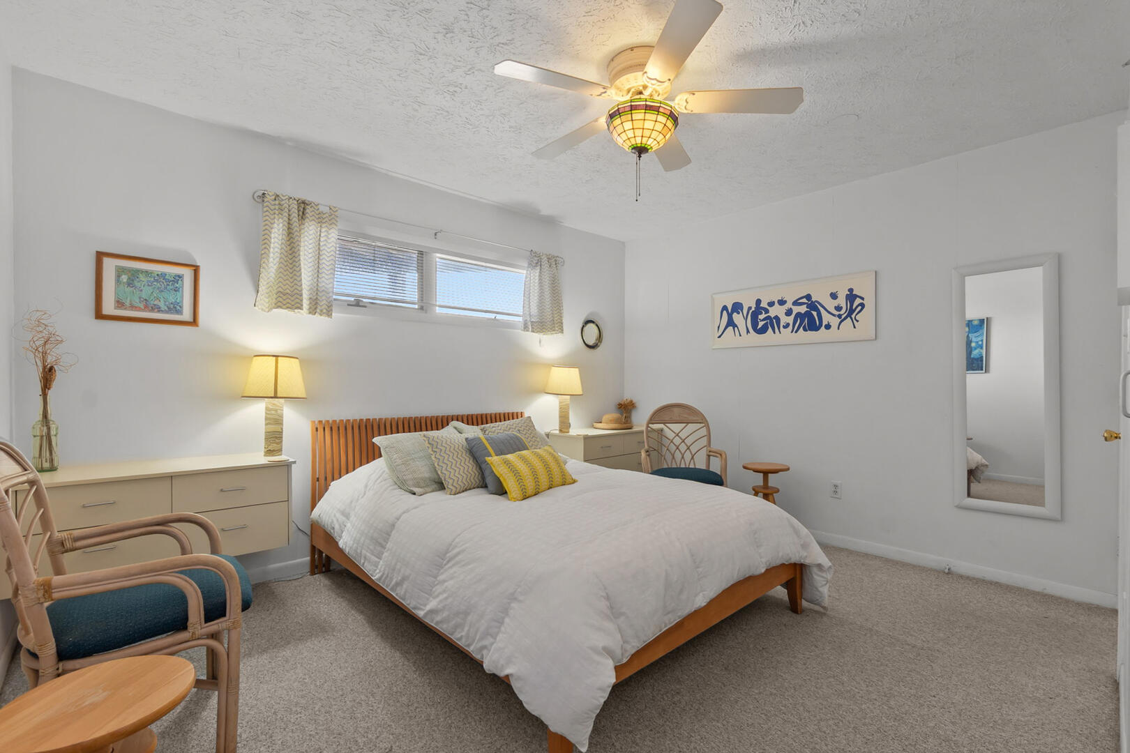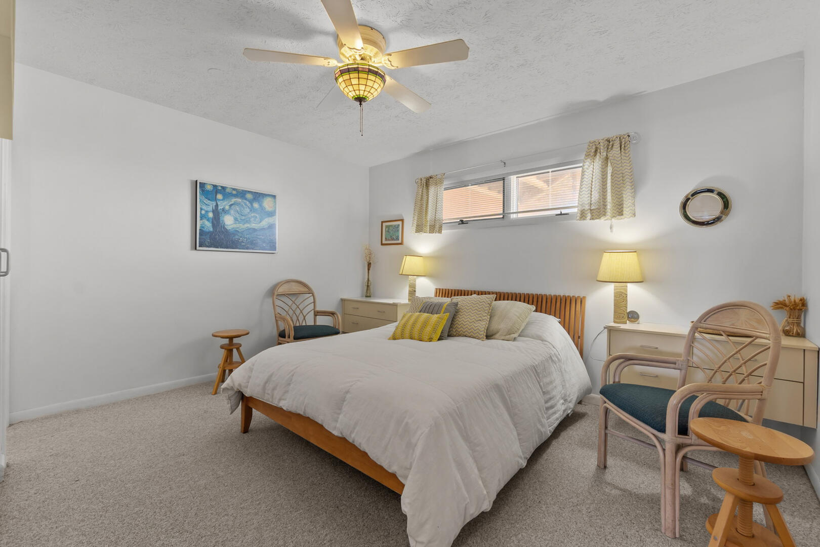 Inside, East of the Sun feels instantly comfortable, with coastal accents, soft natural light, and thoughtfully arranged spaces. The living area is cozy and welcoming, making it ideal for movie nights, board games, or curling up with a good book after a day at the beach. Large windows keep the Atlantic in view and remind you that the ocean is always close.