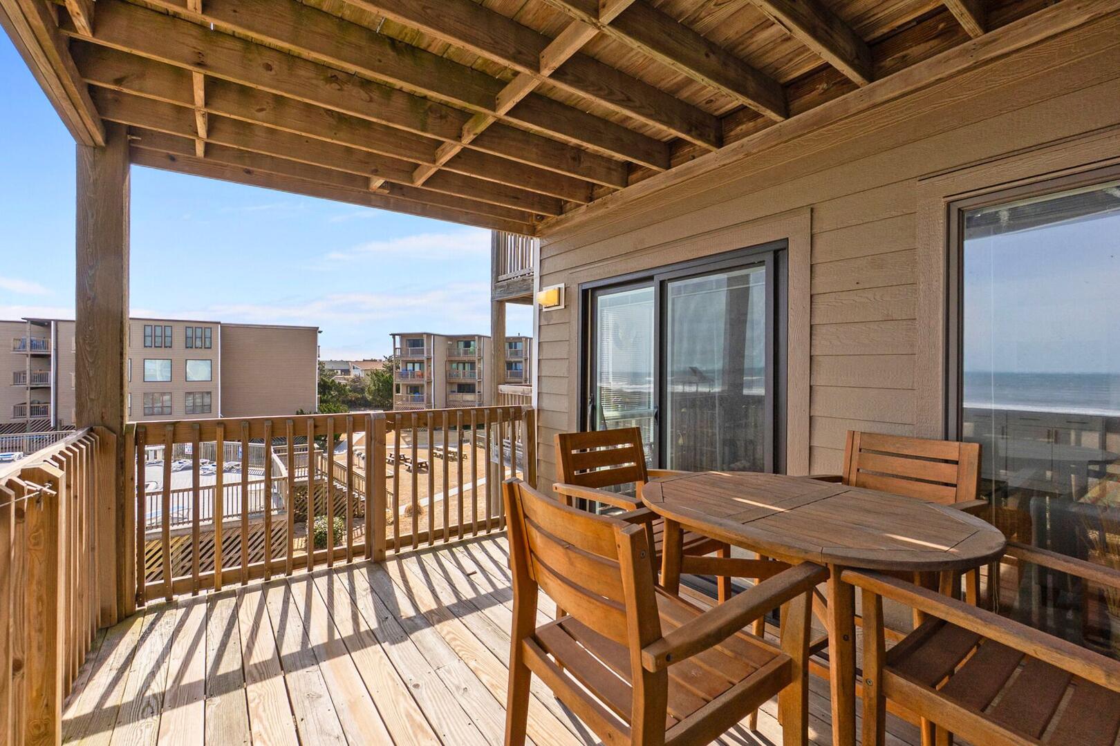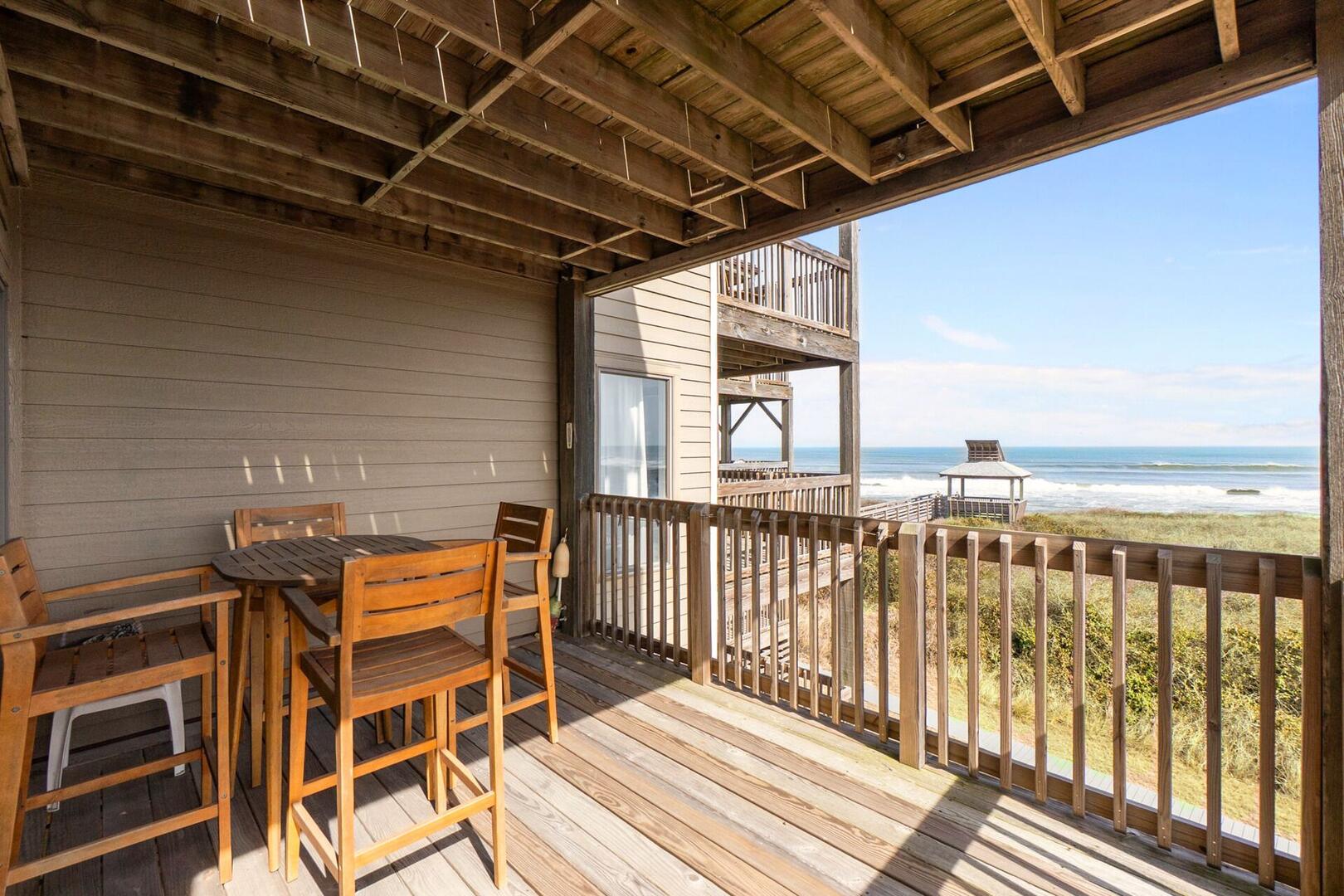 The fully equipped kitchen and dining area make meals easy and enjoyable. Step outside onto the balcony and let the salt air gently drift over you as you take in the sound of the waves and sweeping shoreline views. This space is perfect for morning coffee, afternoon sunshine, or quiet evenings spent stargazing.