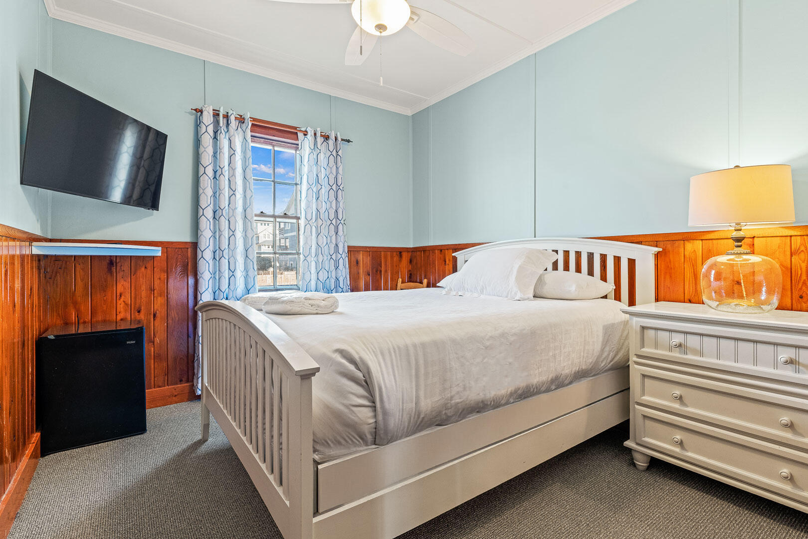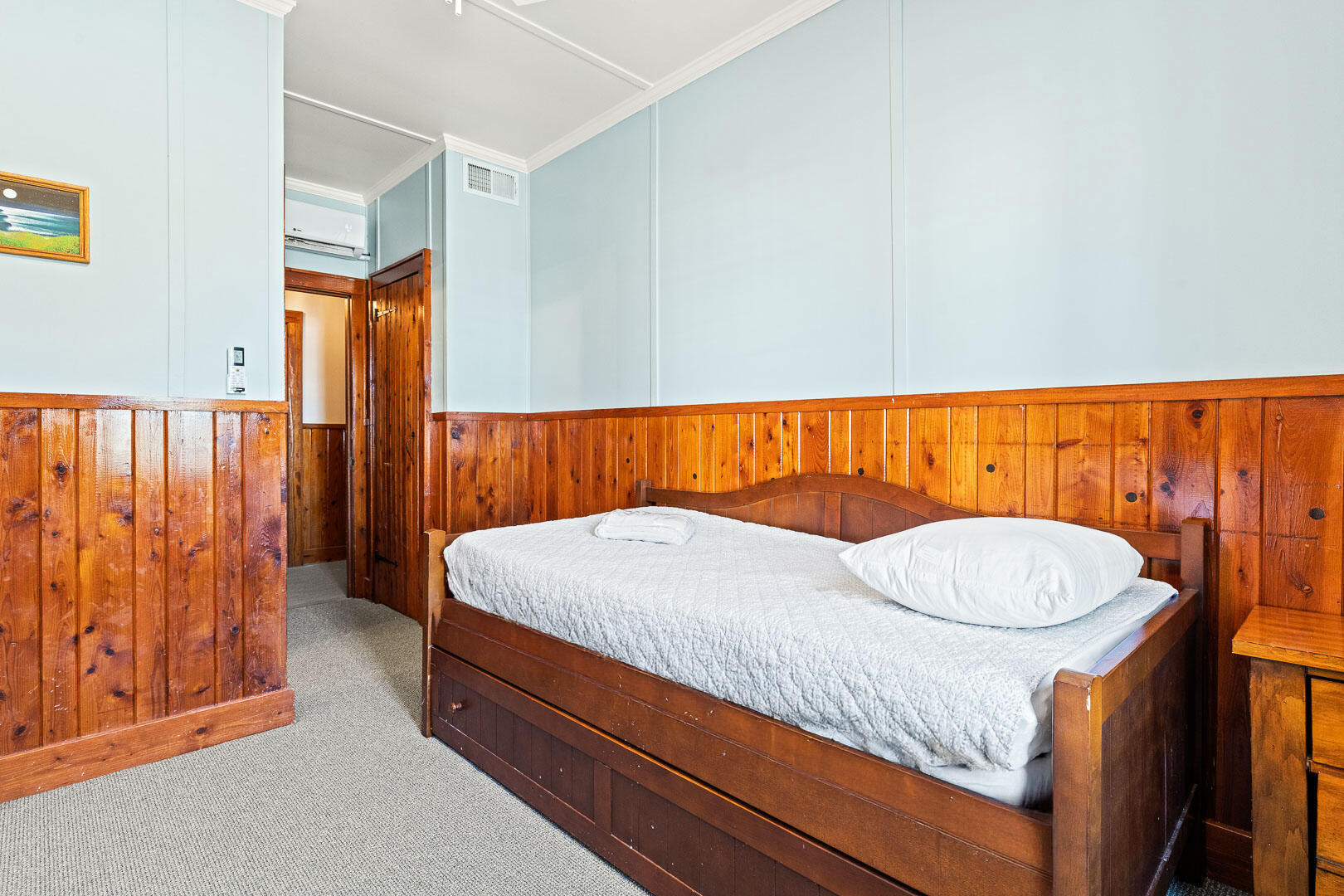 This historic hotel property is perfectly situated just off the beach road at milepost 10.5. Pettibone Suite at Nags Head Beach Inn is a premium hotel room which offers a Queen Bedroom and a separator door to the Twin Daybed with Twin Trundle.