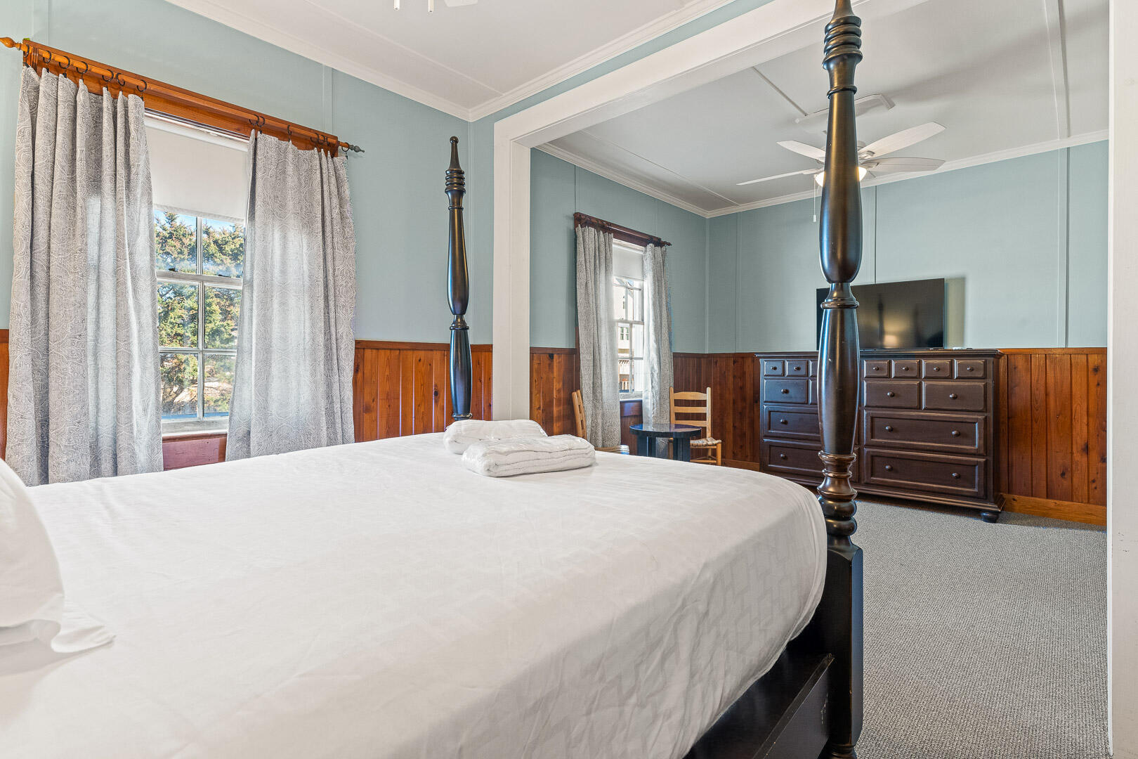 This historic hotel property is perfectly situated just off the beach road at milepost 10.5. Meekin Nook at Nags Head Beach Inn is a Deluxe Queen hotel room offering a queen bed and a bathroom. Being right across from the beach, you will be able to walk your way right to the ocean!