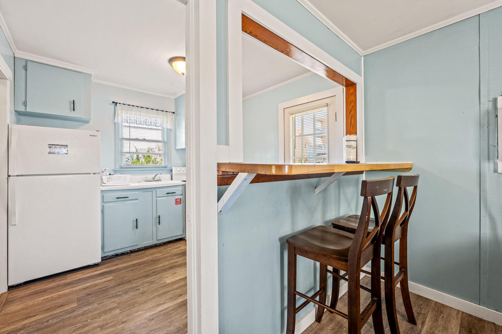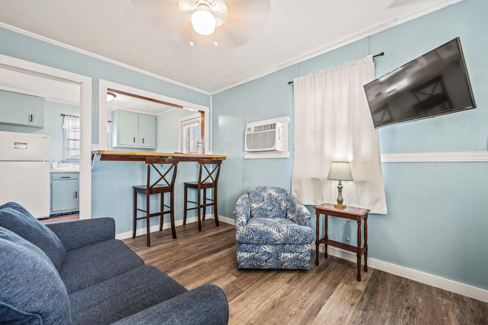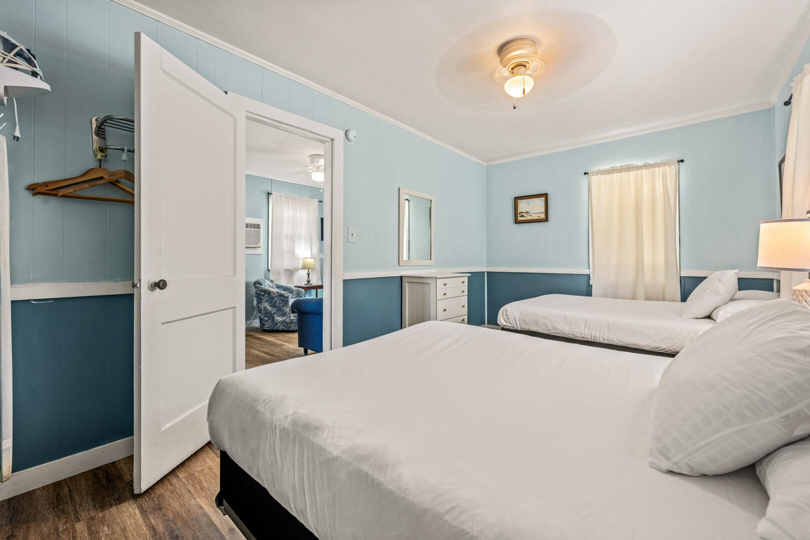 Oceanside Court offers one-, two-, and three-bedroom stand-alone cottages as well as efficiency accommodations. The Docker's Cottage includes one separate bedroom with two full beds, a kitchen with a microwave, a cozy living area, and a full bathroom. Sit at the counter on the bar stool seating to converse with the cook who plans the night's meal.