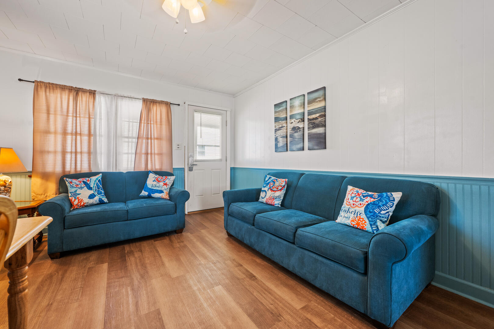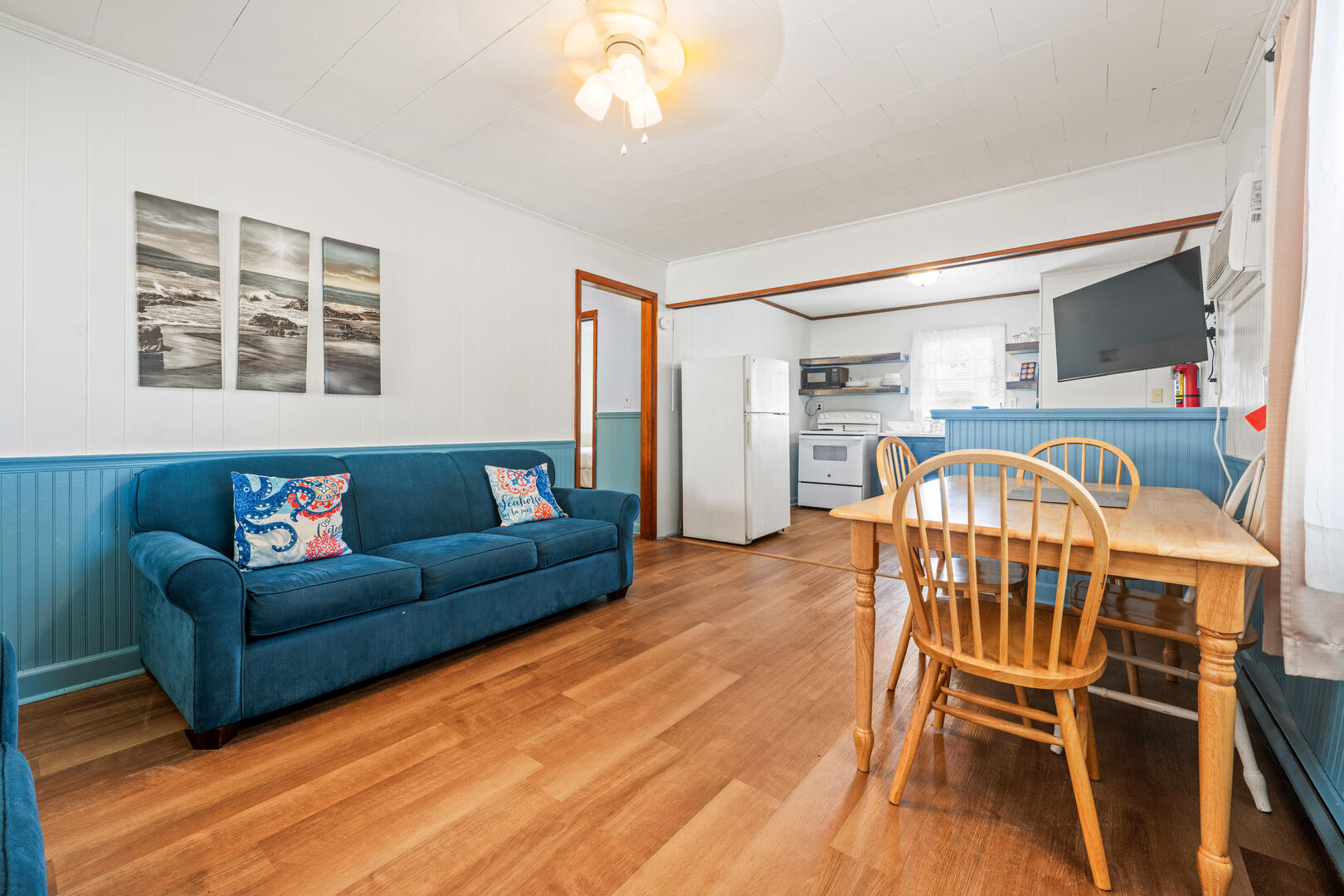 Oceanside Court offers one-, two-, and three-bedroom stand-alone cottages as well as efficiency accommodations. The Mariner's Cottage at Oceanside Court is a stand-alone 2-bedroom cottage. The roomy living area allows for pure relaxation. You will also find a fully functional kitchen with a microwave and dining area as well as a full shared bathroom. Guests can choose between the bedroom with a Queen and Twin Bed or the other bedroom with a Full bed. In front of the cottage is a covered area with a bench seating area where you can spend your evenings hanging out and listening to the waves crash on the beach. Enjoy sitting outside the cottage watching the sights and sounds of Oceanside Court.
