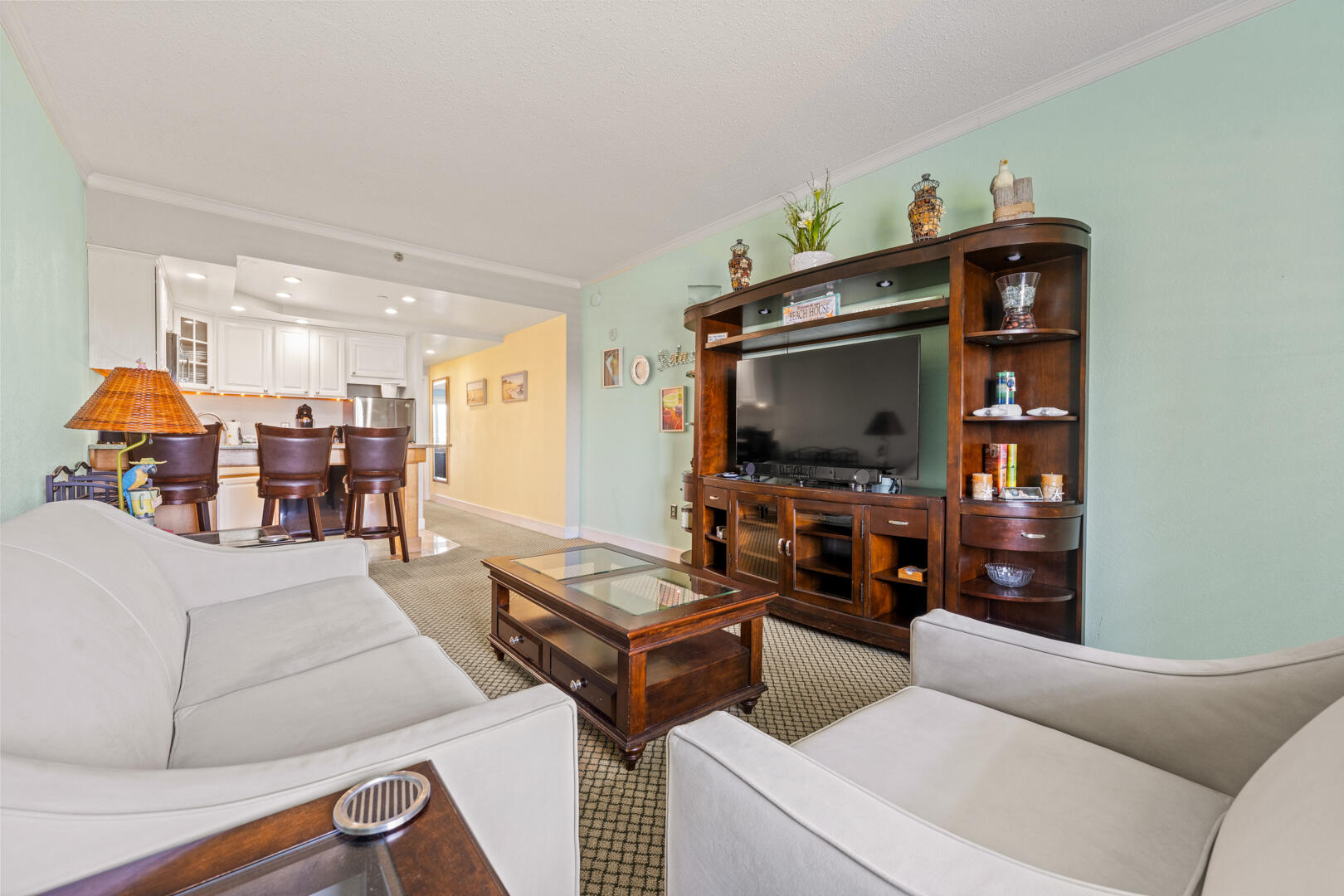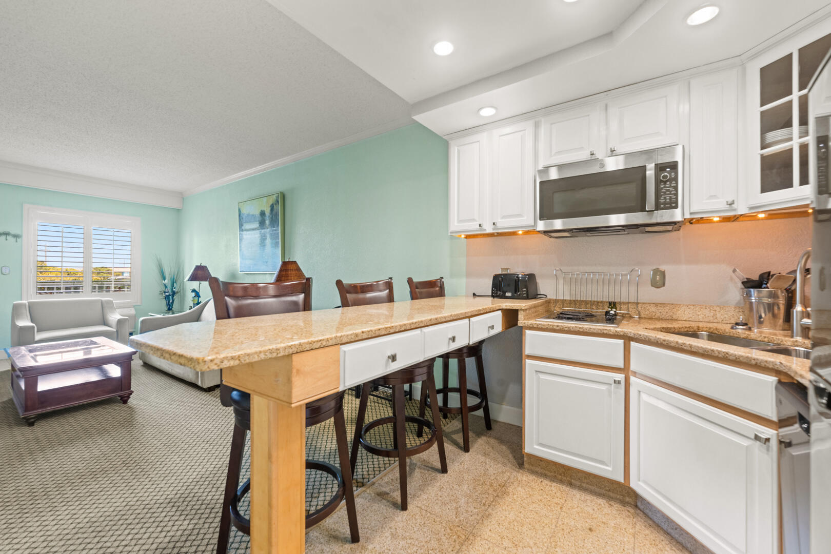 Sunset Surf features 1-bedroom with a King bed and a Queen sleeper sofa in the living room. It can comfortably sleep up to four guests. The living area has a TV, ready for those movie nights after a long day at the beach. The kitchen has everything needed to cook a delicious meal, providing that home-away-from-home feel. This unit is located on the first level, facing the pool.