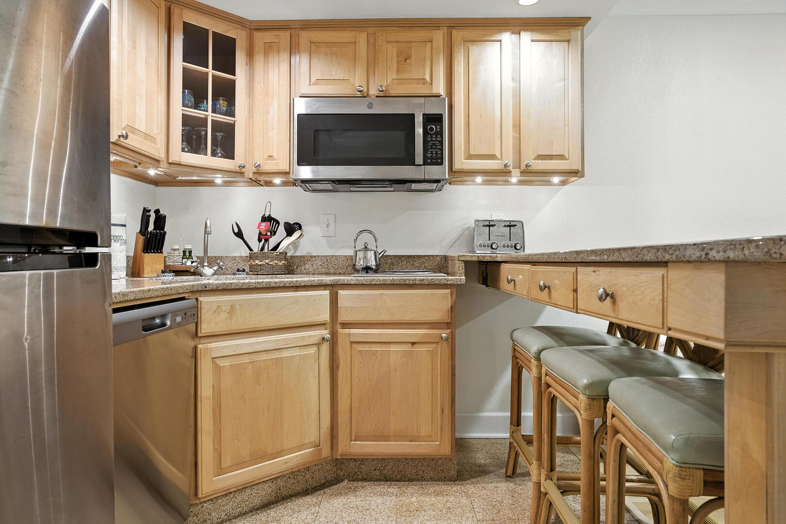 The kitchen has also been outfitted to give the impression of a home-away-from-home. Dishes, cookware and silverware are provided that will be enough to please the chef of any family. Happen to save some leftovers from one of the waterside grills or delis in Hatteras? Store the meal in the fridge and then heat it up in the microwave or mini-oven.